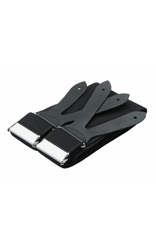Deze leren flap bretels hebben 40 mm brede Hercules-straps, sterke stalen in de lengte verstelbare clips, een echt lederen Y-bruggen en echt lederen knopen, en bevatten ook niet-textiele componenten van dierlijke oorsprong.