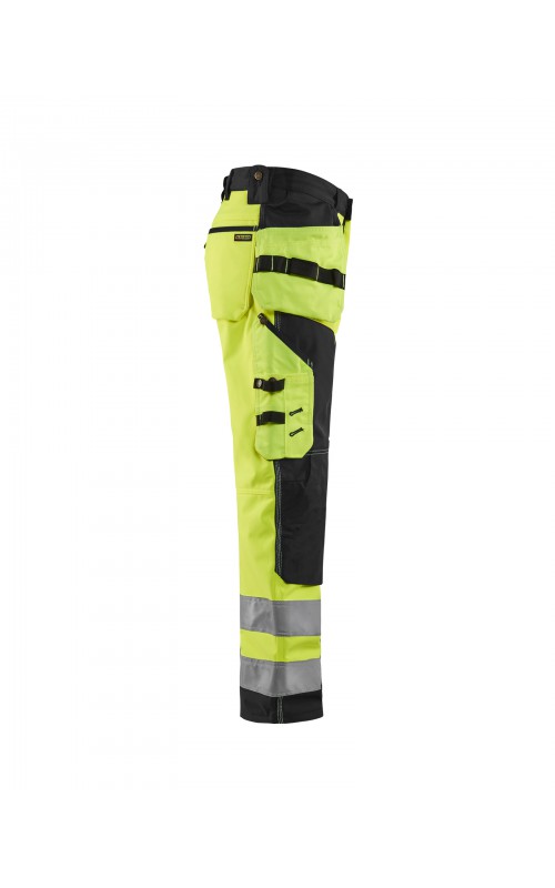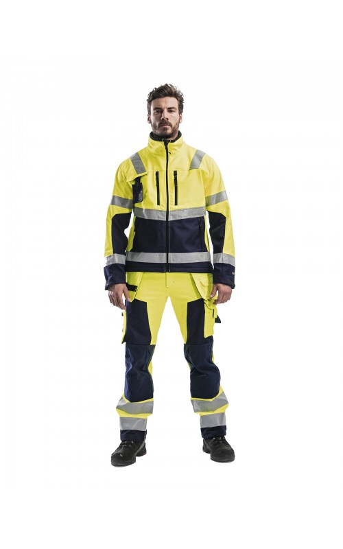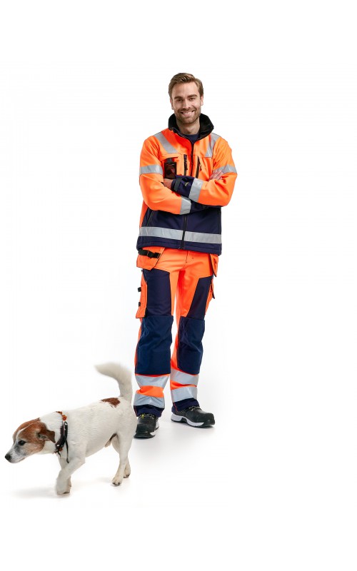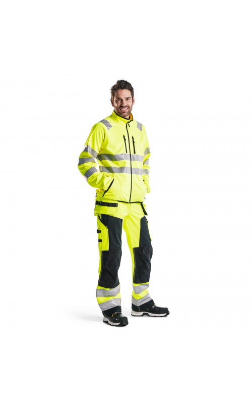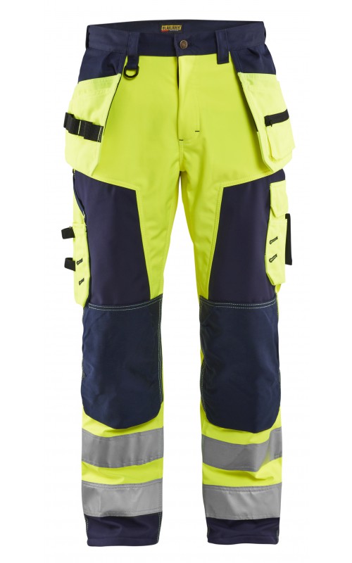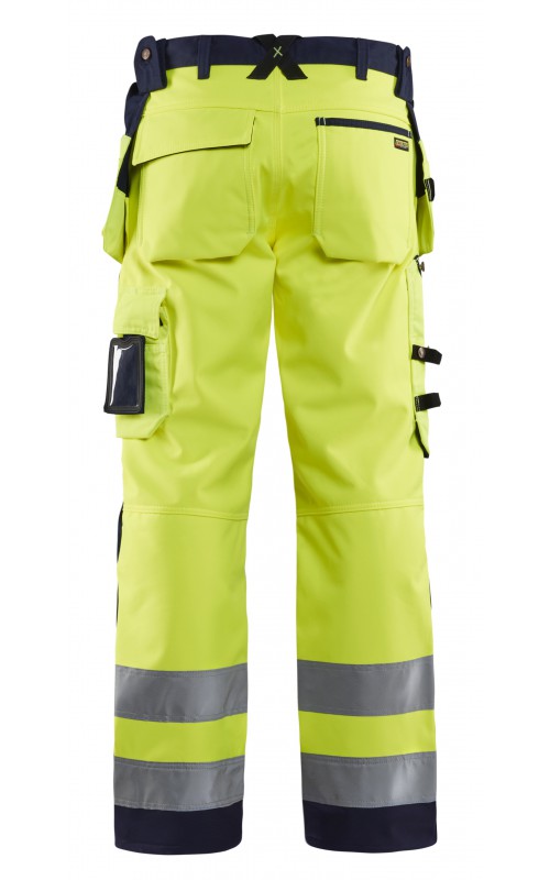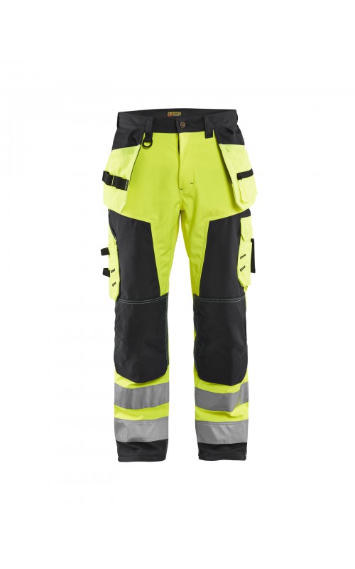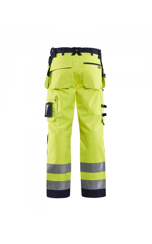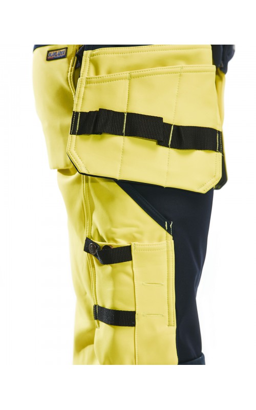 High Vis werkbroek van rekbaar en waterafstotend softshellmateriaal. Zeer slijstvast en multi-functioneel. Gecertificeerd volgens EN471 en EN20471, klasse 2, hoge zichtbaarheidskleding.