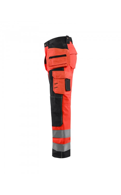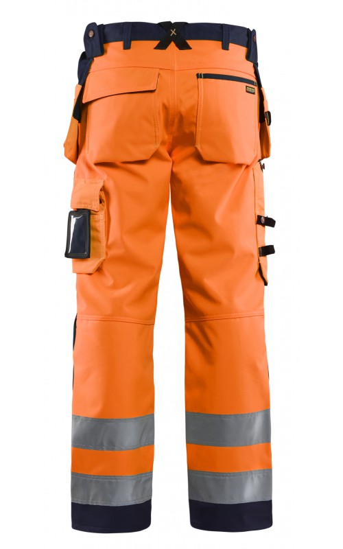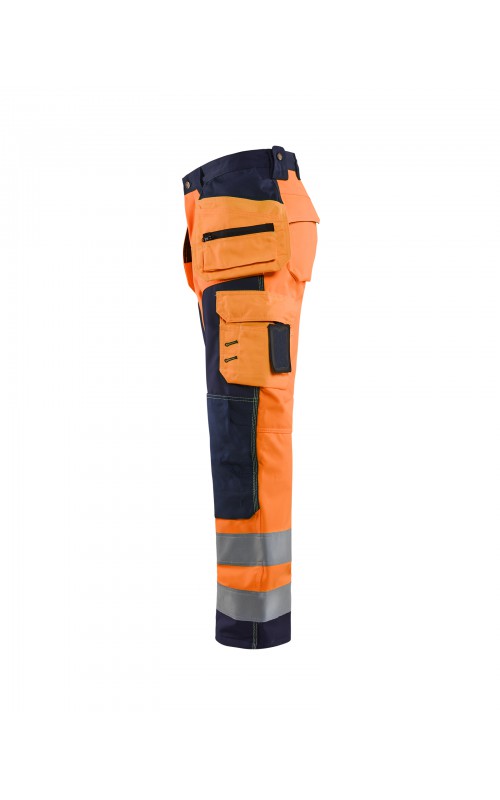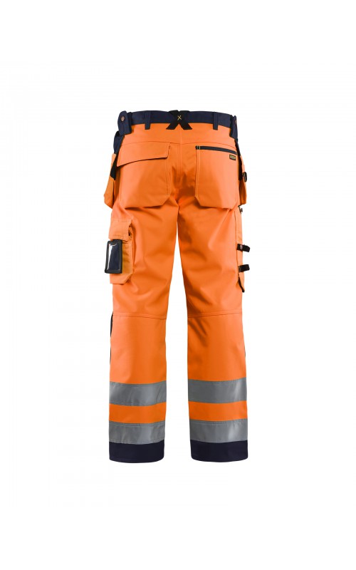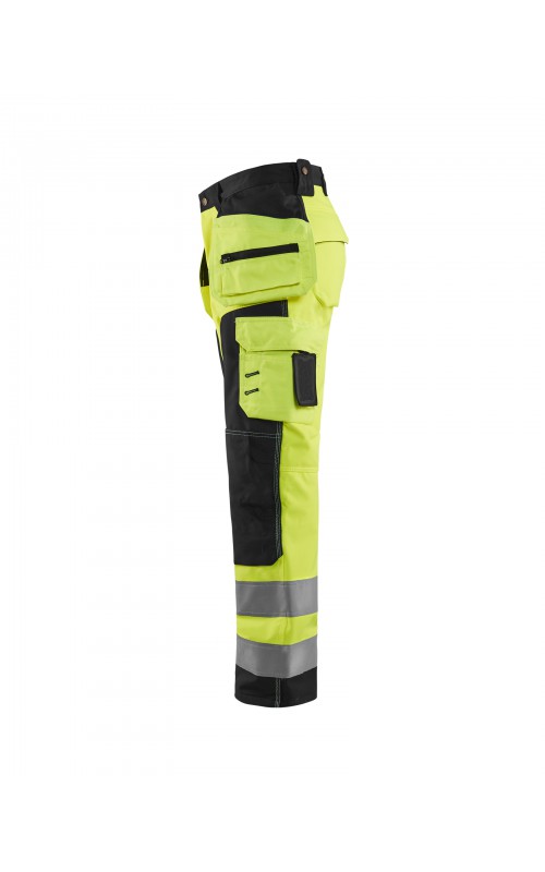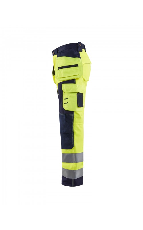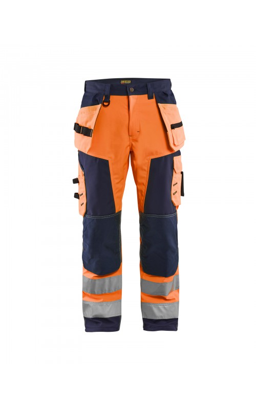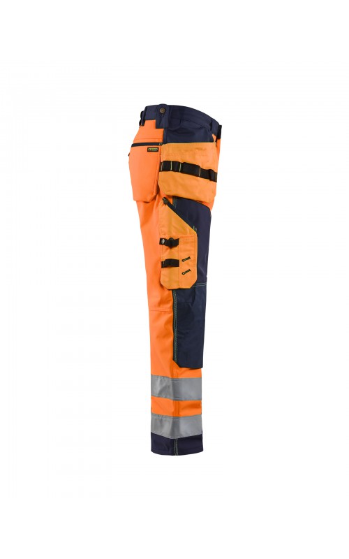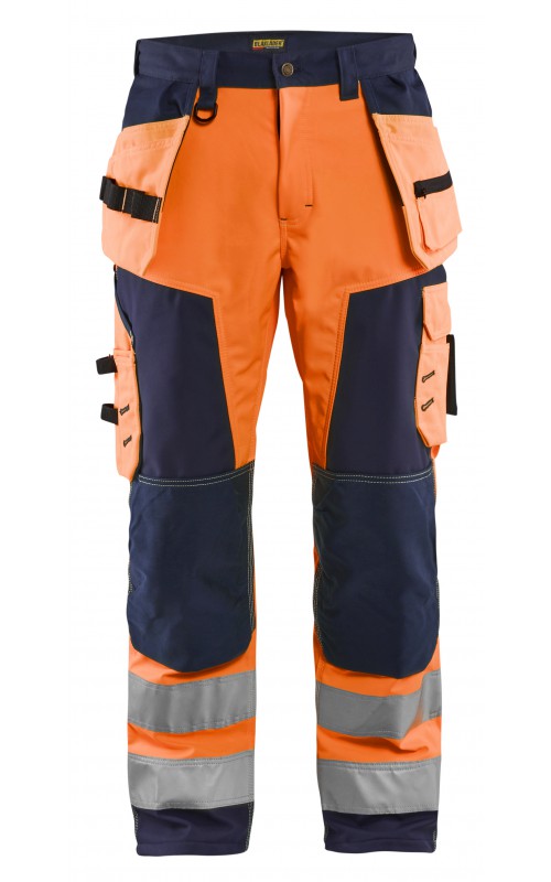 High Vis werkbroek van rekbaar en waterafstotend softshellmateriaal. Zeer slijstvast en multi-functioneel. Gecertificeerd volgens EN471 en EN20471, klasse 2, hoge zichtbaarheidskleding.