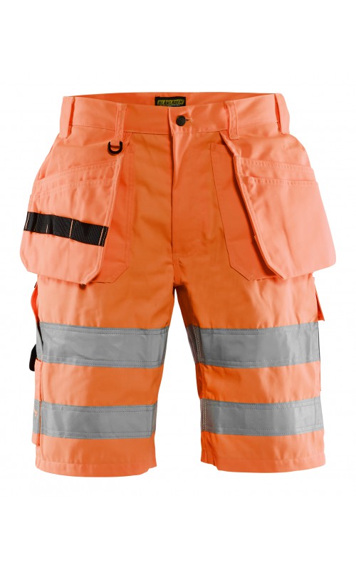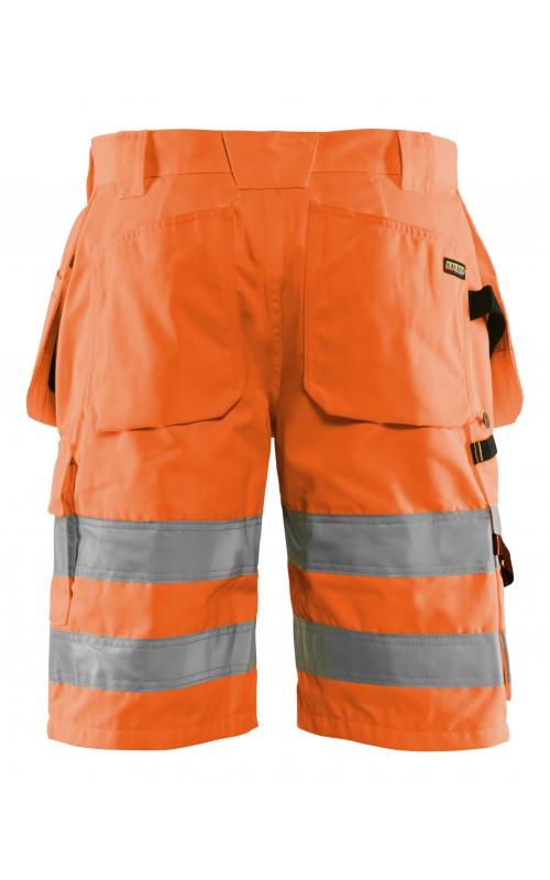 Comfortabele High Vis korte short met uitstekende pasvorm. Met versterkte losse spijkerzakken en een extra ruime achterzak met plooi. Gecertificeerd volgens EN 20471, klasse 2, beschermende kleding met hoge zichtbaarheid. (Ook verkrijgbaar zonder losse spijkerzakken, model 1537).