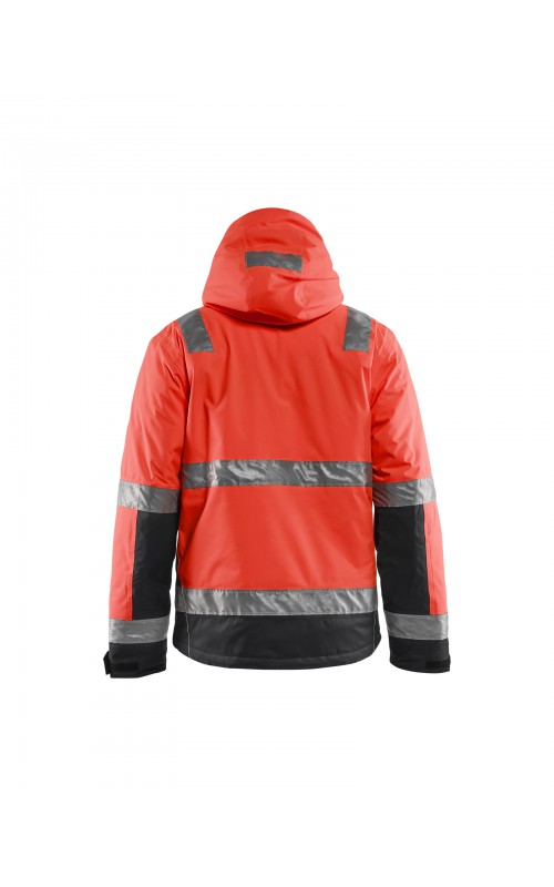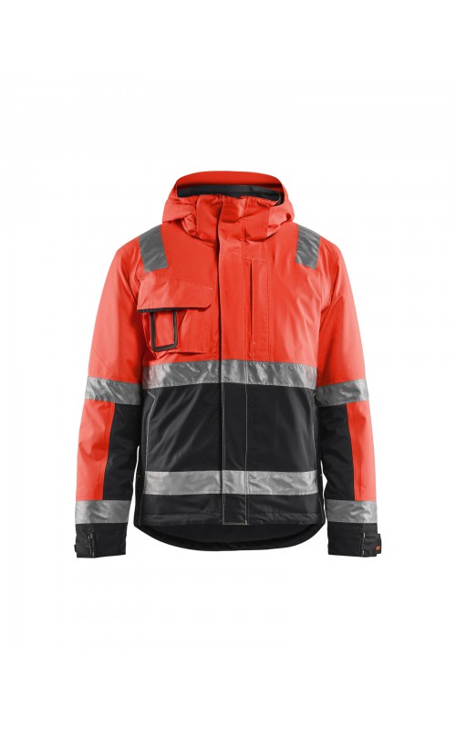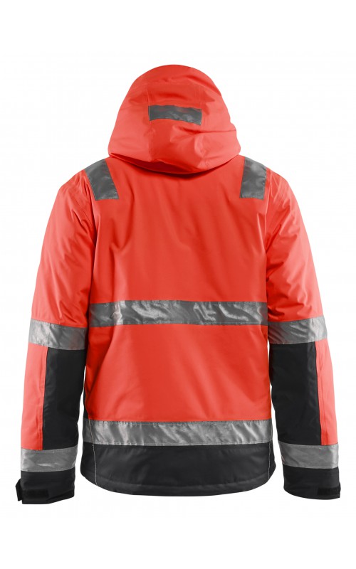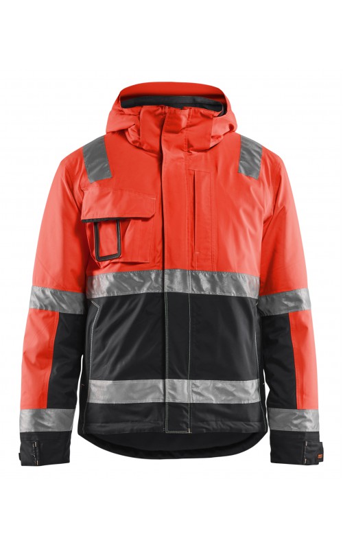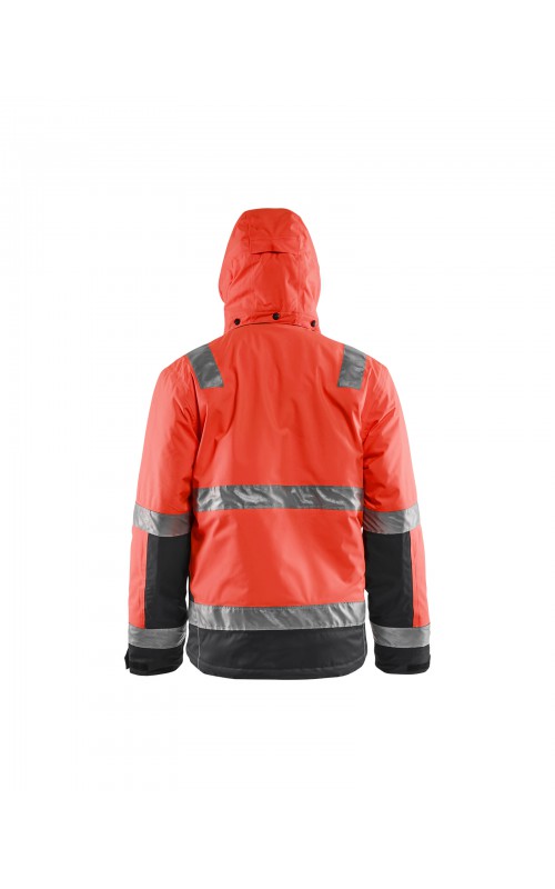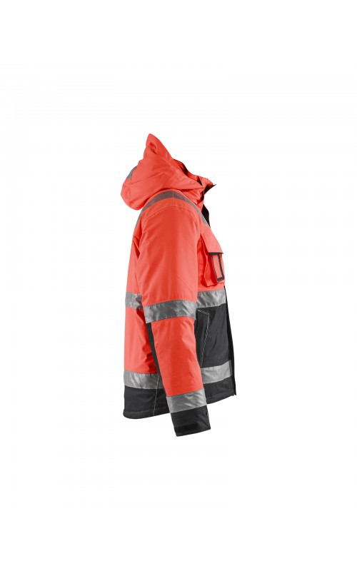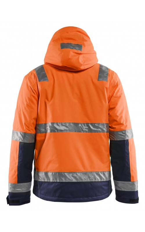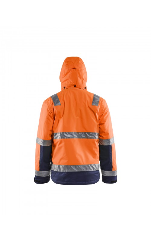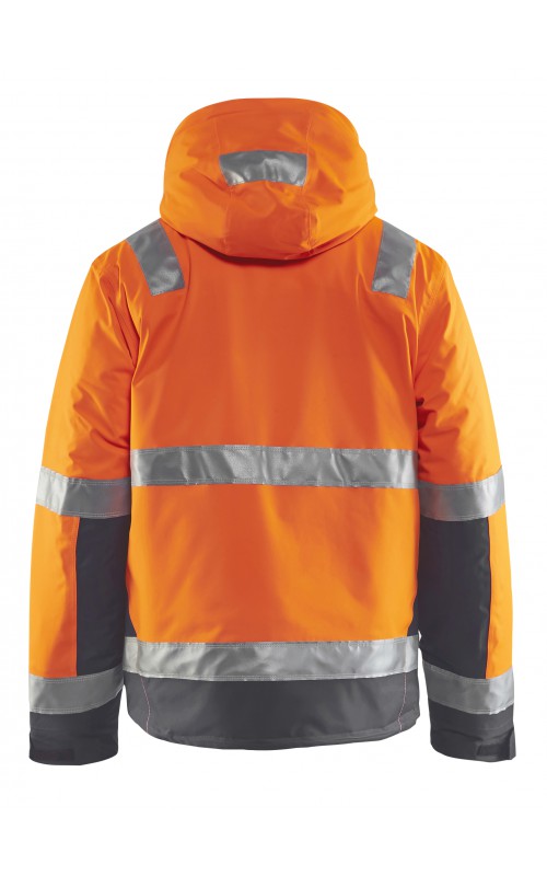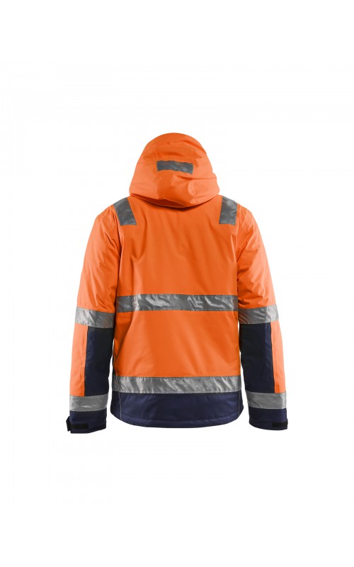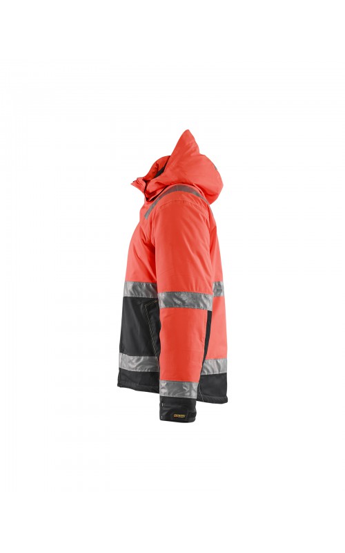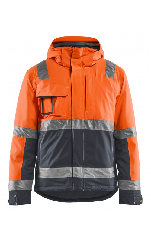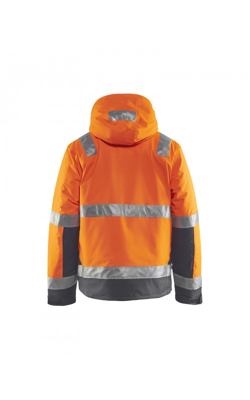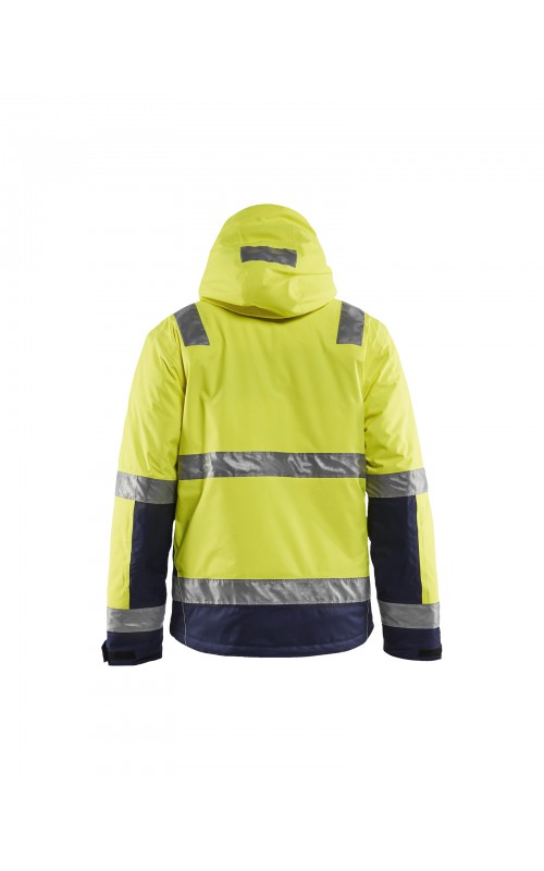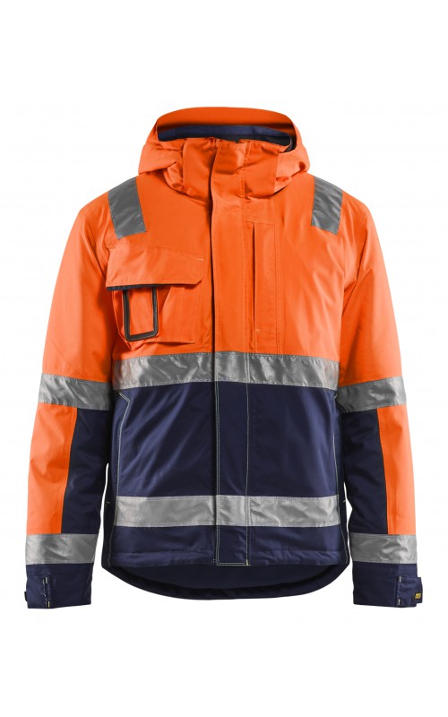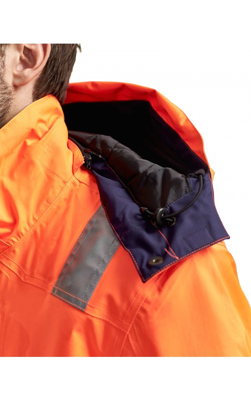 Winterjas met hoge zichtbaarheid, met zeer duurzaam, waterafstotend en vuilwerend stretch stof aan de buitenkant. De jas heeft donkere kleurzones op de plaatsen die het meest blootgesteld zijn aan vuil. Deze jas heeft de volgende ruime en handige zakken: voorzakken, borstzakken met ritssluiting, penzakje en telefoonzakje en twee binnenzakken, één grotere voor bv. handschoenen en één kleinere zak met een Velcro®-sluiting.