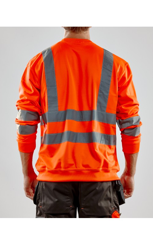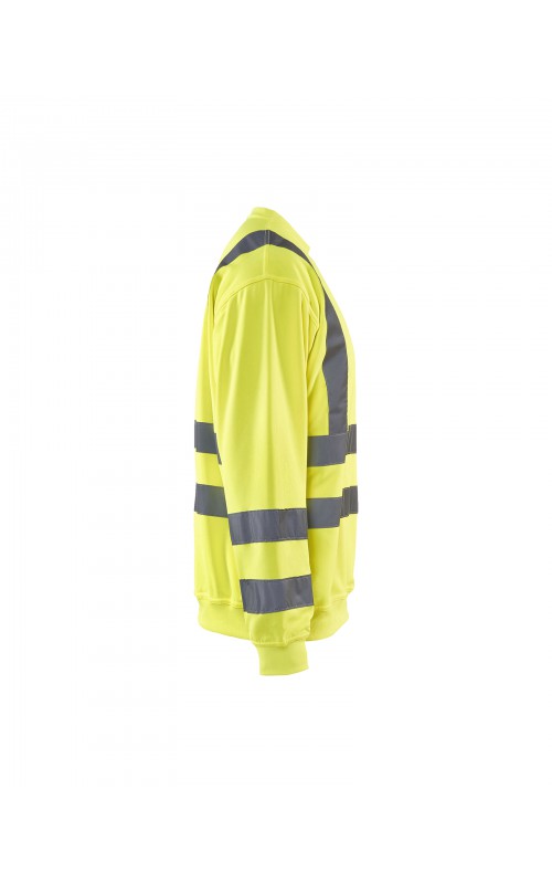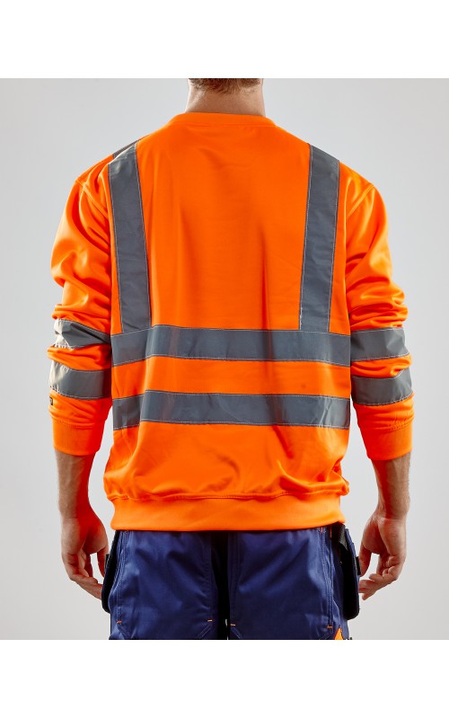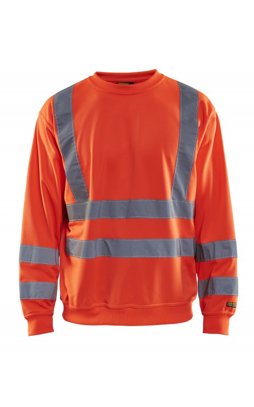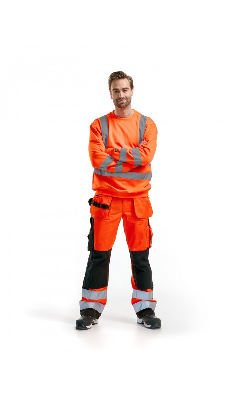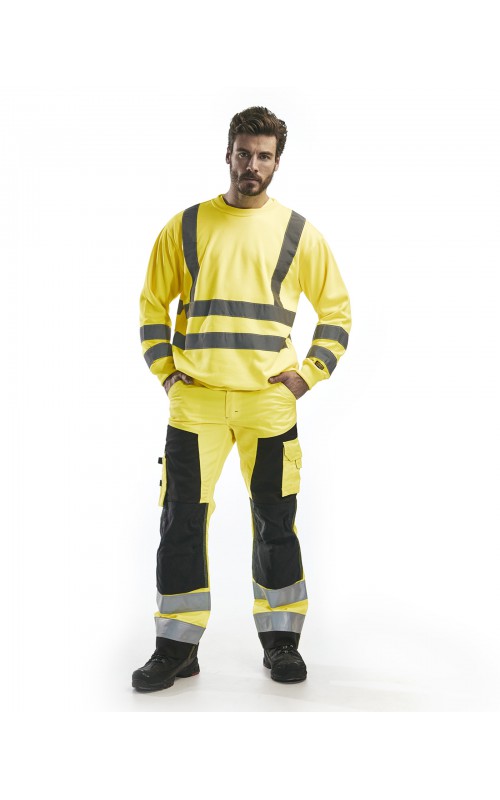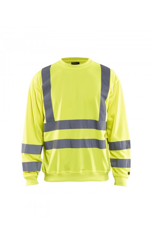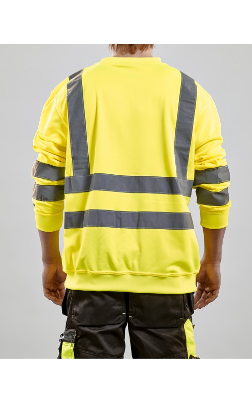 Val op in dit High Vis sweatshirt. De sweater heeft versterkte nek- en schoudernaden en gebreide ribboorden en is voorzien van 50 mm reflectietape. Gecertificeerd volgens EN471, XXS-S klasse 2 M-4XL klasse 3, beschermende kleding met hoge zichtbaarheid.