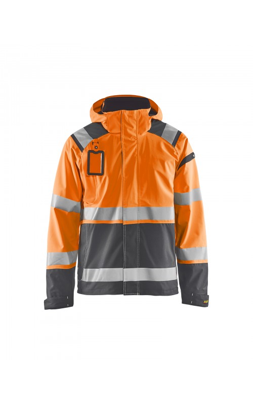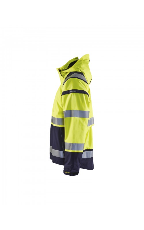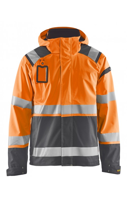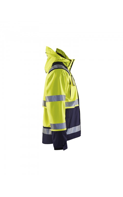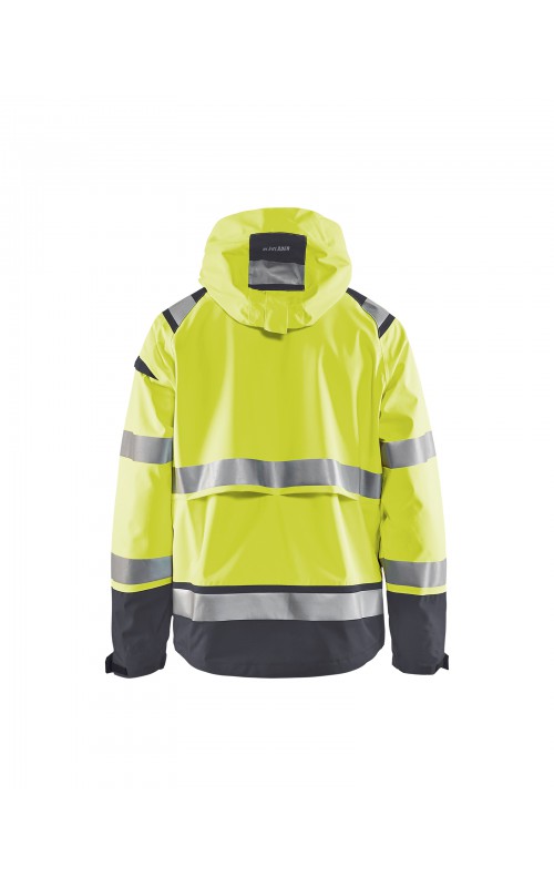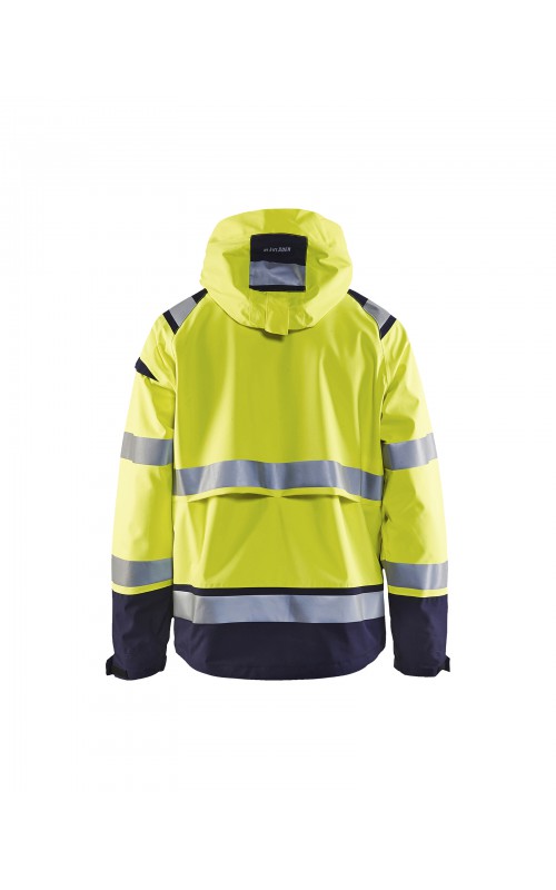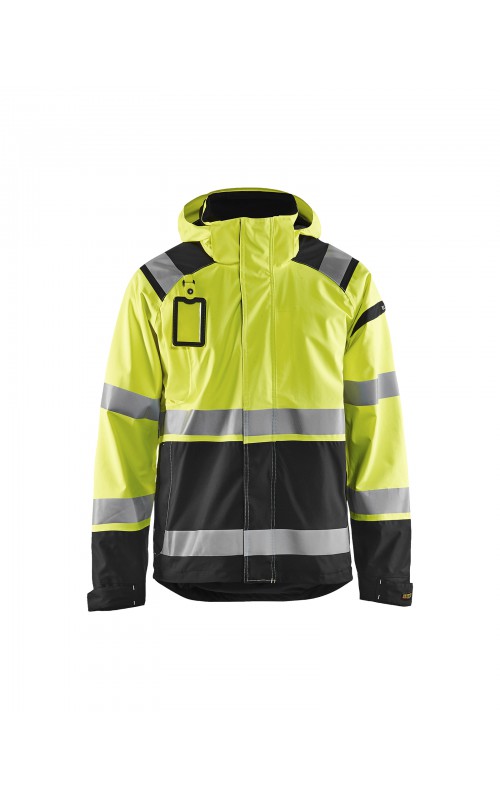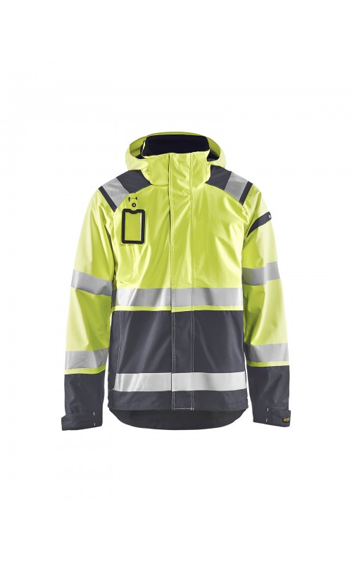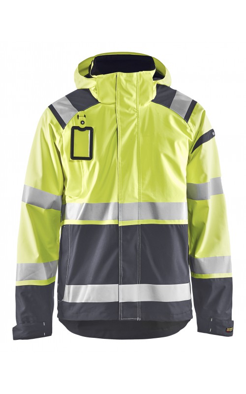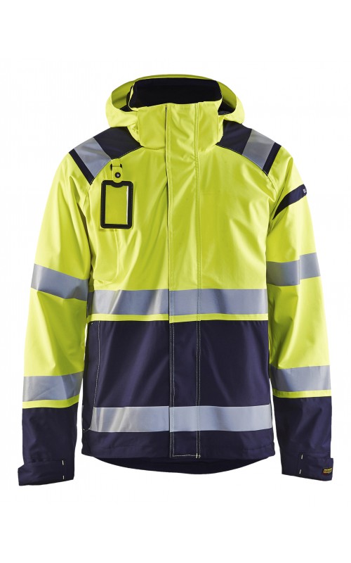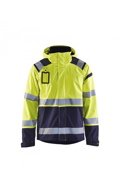 Een meshgevoerd High Vis shelljack van wind- en waterdicht materiaal met getapete naden en transferreflectie. Perfect voor de herfst en de lente, of in koudere temperaturen met een extra laag van fleece eronder. Met afneembare en verstelbare capuchon, verlengd rugpand. De jas is gecertificeerd volgens EN ISO 20471, XS-S Klasse 2, M klasse 3 - beschermende kleding met hoge zichtbaarheid en volgens EN 343 - beschermende kleding tegen slecht weer. Ook verkrijgbaar in damesmodel 4904.