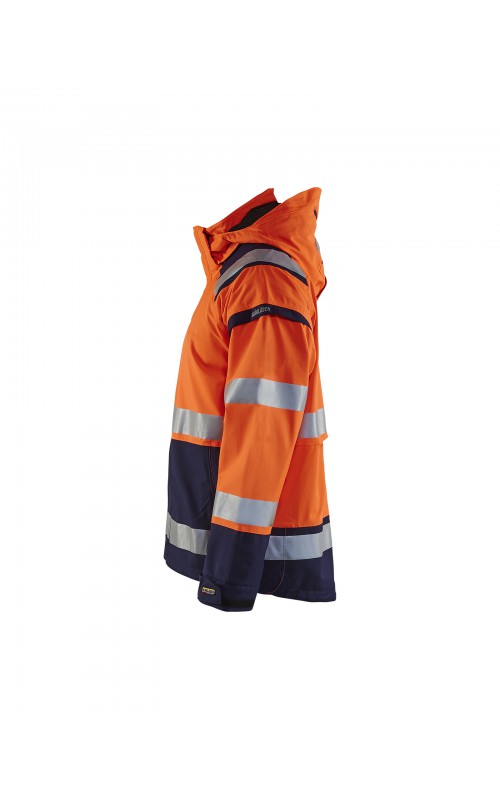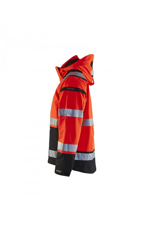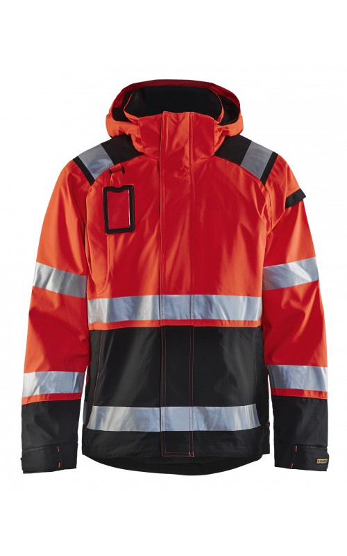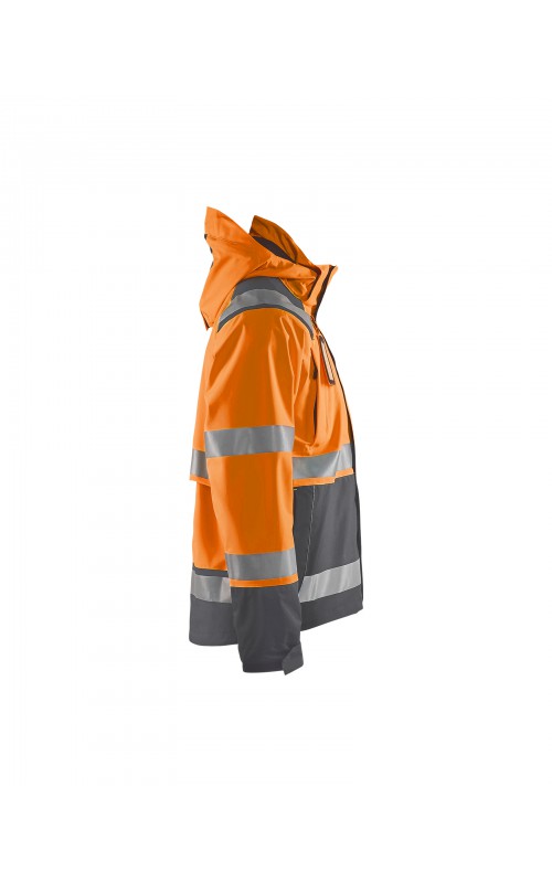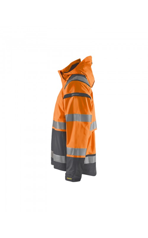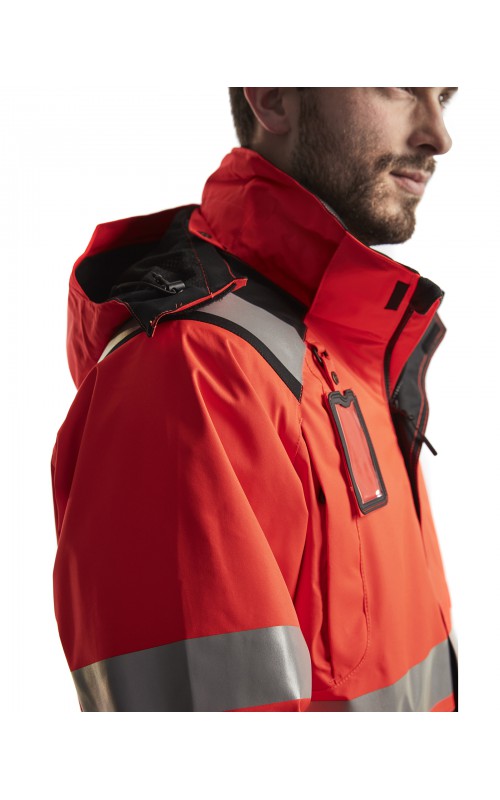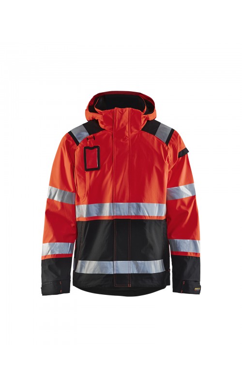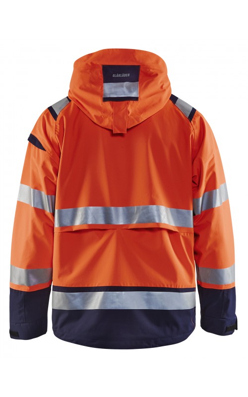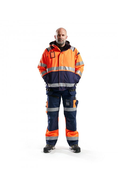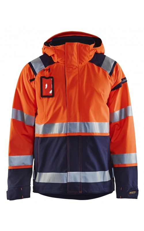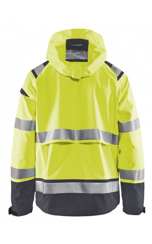 Een meshgevoerd High Vis shelljack van wind- en waterdicht materiaal met getapete naden en transferreflectie. Perfect voor de herfst en de lente, of in koudere temperaturen met een extra laag van fleece eronder. Met afneembare en verstelbare capuchon, verlengd rugpand. De jas is gecertificeerd volgens EN ISO 20471, XS-S Klasse 2, M klasse 3 - beschermende kleding met hoge zichtbaarheid en volgens EN 343 - beschermende kleding tegen slecht weer. Ook verkrijgbaar in damesmodel 4904.