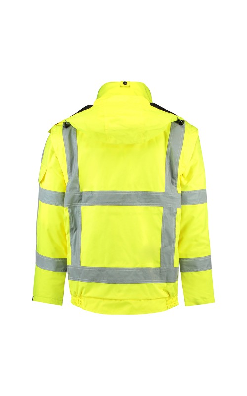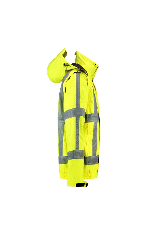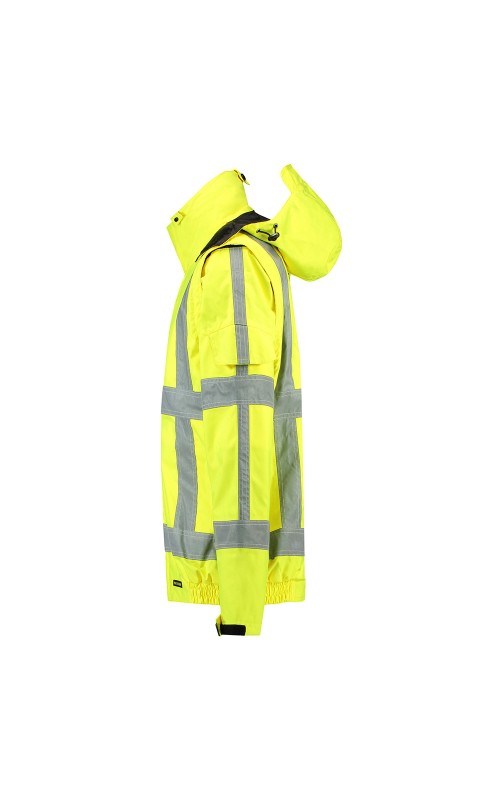 High Visibility pilotenjack conform de richtlijnen van Rijkswaterstaat (RWS). Het in pilotenstijl uitgevoerde jack heeft een sportieve pasvorm. Wind-, waterdicht en ademend, voorzien van getapete naden, PU-coating en waterafstotende ritsen. Hoge zichtbaarheid conform EN ISO 20471:2013, Klasse 3 inclusief mouwen en EN ISO 20471:2013, Klasse 2 exclusief mouwen, met dubbel gestikte striping. Het jack heeft een capuchon die zowel afritsbaar is als opbergbaar in de kraag, afritsbare mouwen, een verticale zak met waterafstotende rits en een zak met rits geschikt voor een telefoon. Tevens voorzien van een 2-weg deelbare frontrits en een dubbele stormflap met waterkering. Dit pilotjack heeft een uitneembare thermovoering en een binnenzak met snoerdoorvoer en ID-Badge.