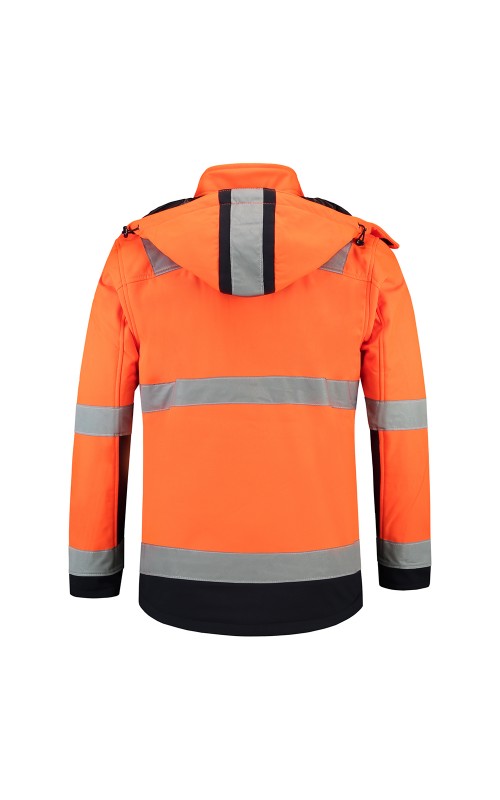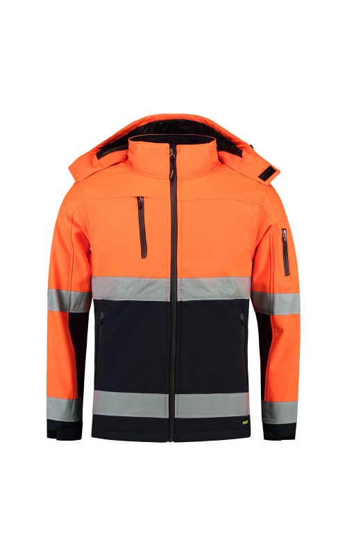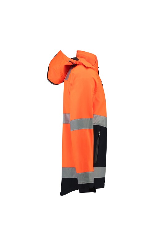 Deze hoge zichtbaarheid tweekleurige SoftShell jas wordt gemaakt van een ademende en waterafstotende stof. De strak op elkaar geweven lagen maken dit beschermede effect extra groot zonder in te boeten op het zachte en prettige draagcomfort. Dit wordt bereikt door de ademende PU-tussenlaag en het gebruik van mechanische stretch. Winddicht en waterafstotend. Voorzien van gelamineerde waterafstotende ritsen. Aan de onderzijde verstelbaar met elastisch koord met stoppers, een verlengd rugpand, baardkapje en verstelbare manchetten d.m.v. klittenband. Hoge zichtbaarheid conform EN ISO 20471:2013, Klasse 2, met gestikte striping. Deze jas is uitgevoerd met 4 zakken aan de voorzijde, een binnenzak geschikt voor telefoon of MP3-speler, met snoerdoorvoer en ID-badge. Verkrijgbaar in 3 kleurencombinaties. Om doorbloeden te voorkomen raden wij aan om alleen druktechnieken te gebruiken die geschikt zijn voor softshell stoffen.