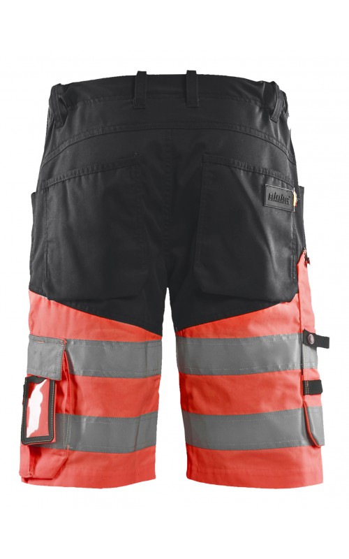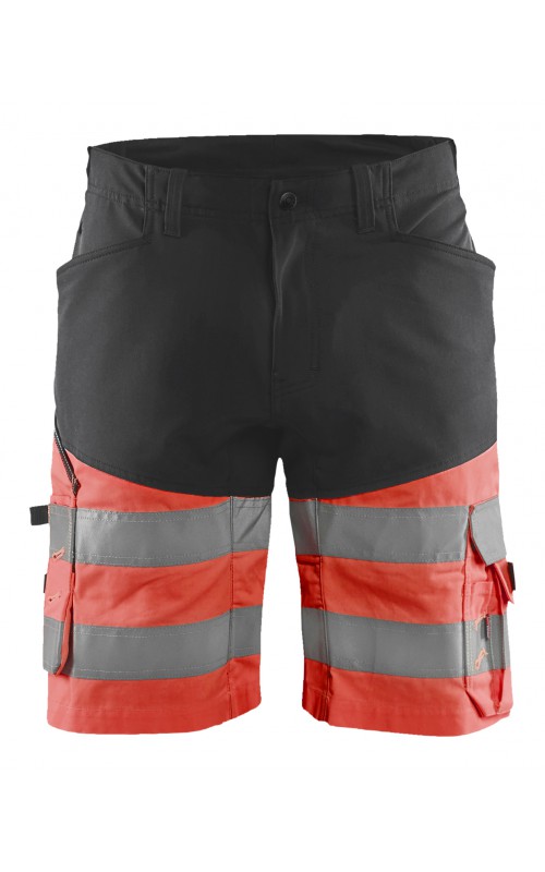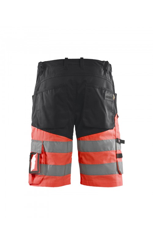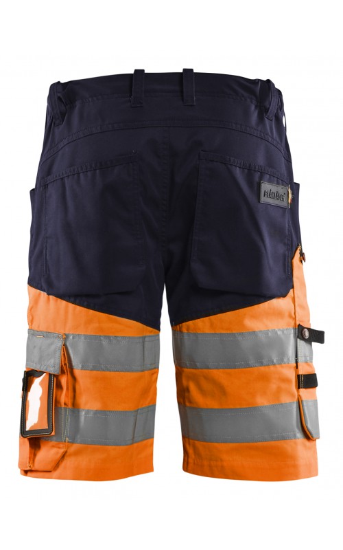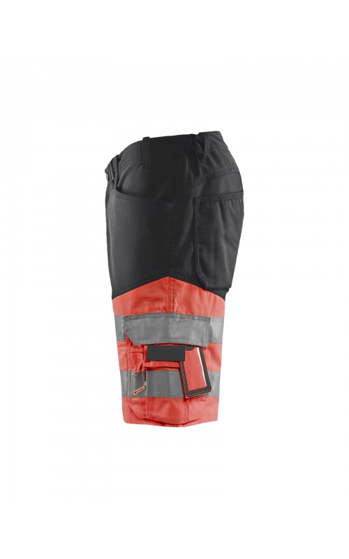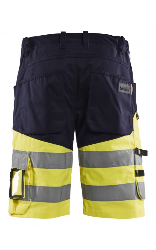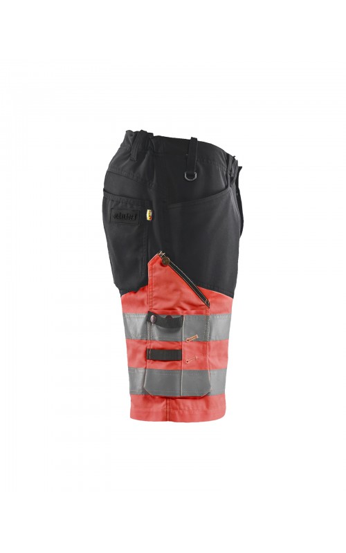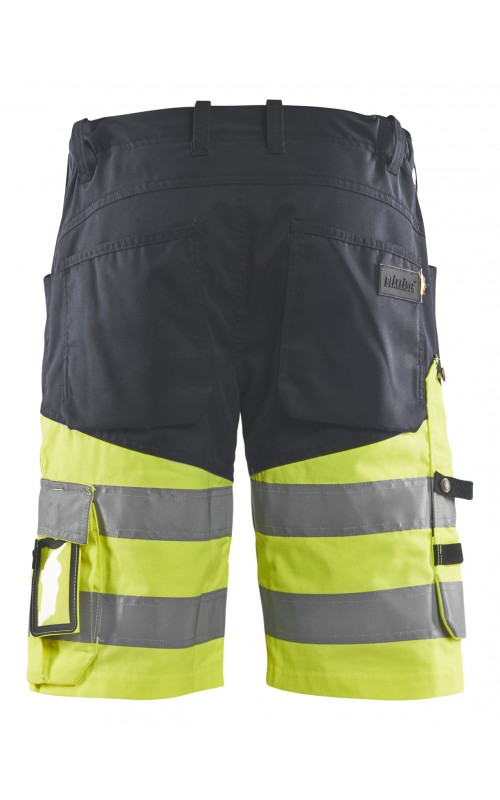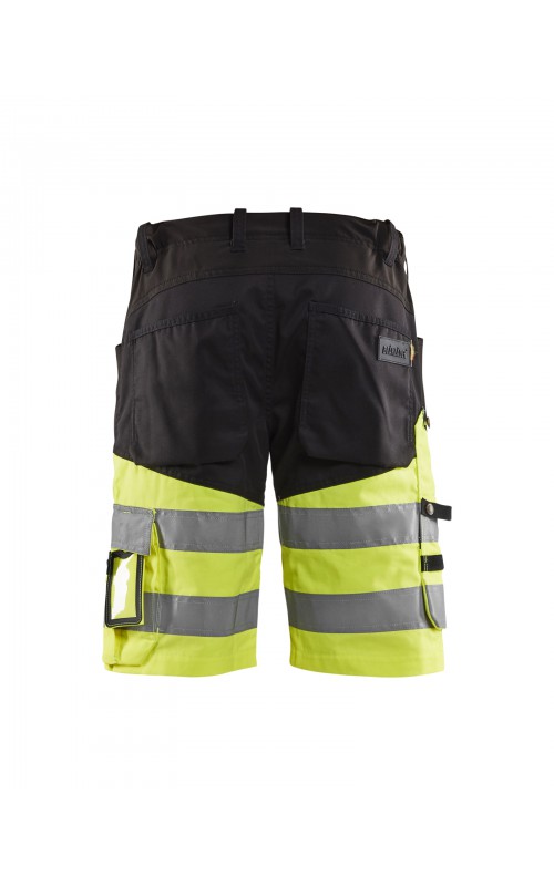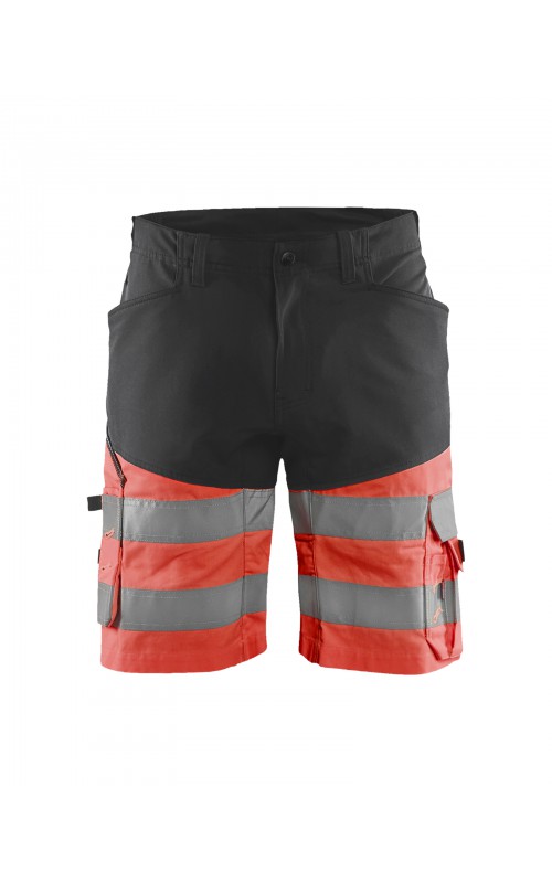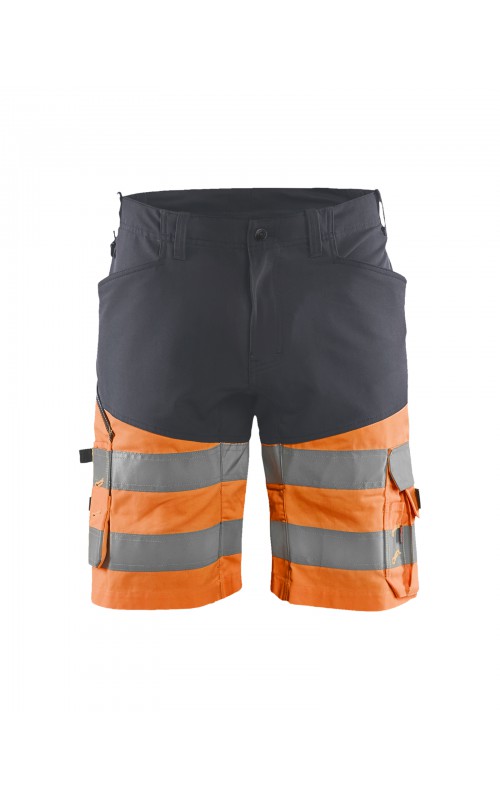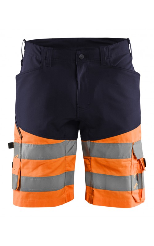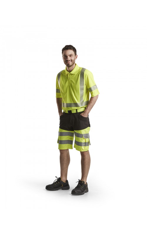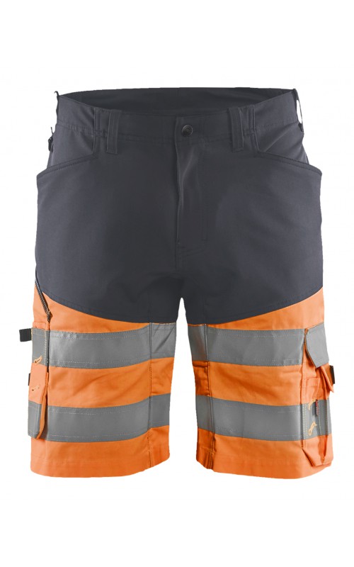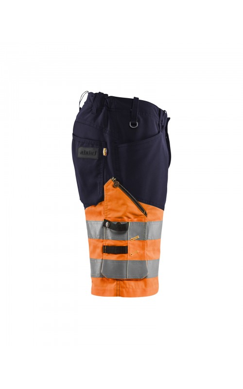 High Vis gecertificeerde short van klasse 1 met stretch panelen. Uitgerust met een elastische taille voor een uitstekend draagcomfort. CORDURA®-versterkte zakken, beenzak met telefoonzak en ID-kaarthouder. Gecertificeerd volgens EN ISO 20471, klasse 1. Combinatiecertificering V.