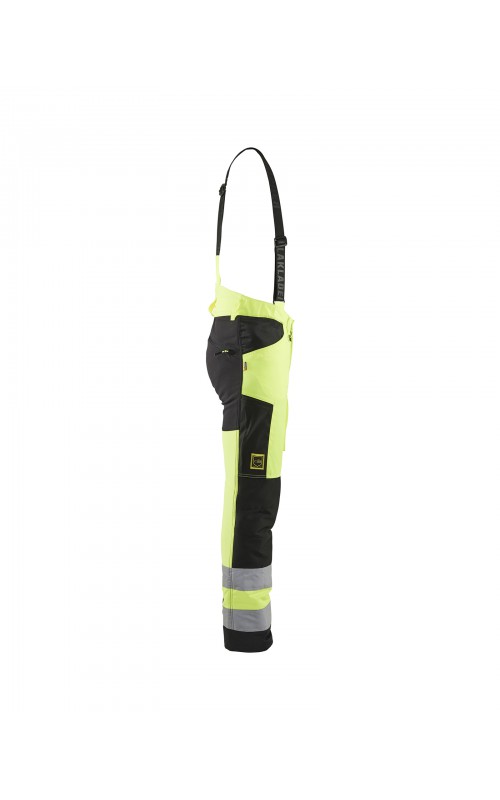 Zaagbeschermingsbroeken in High Vis klasse 2, die met zijn volledige dekking klasse 1 zaagbescherming aan de voorkant u beschermt en uw aandacht op het werk laat in plaats van op de veiligheid. De broek heeft aan beide broekspijpen en aan beide zijkanten zaagbescherming, waardoor hij door zowel rechts- als linkshandigen te gebruiken is. Naast dat het gehele ruggedeelte bestaat uit 4-weg stretch, heeft de broek ook een verhoogd rugpand voor meer comfort.