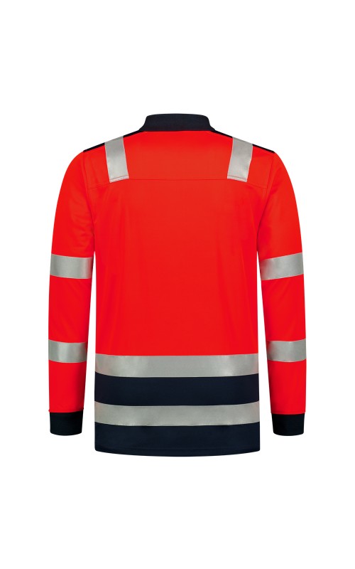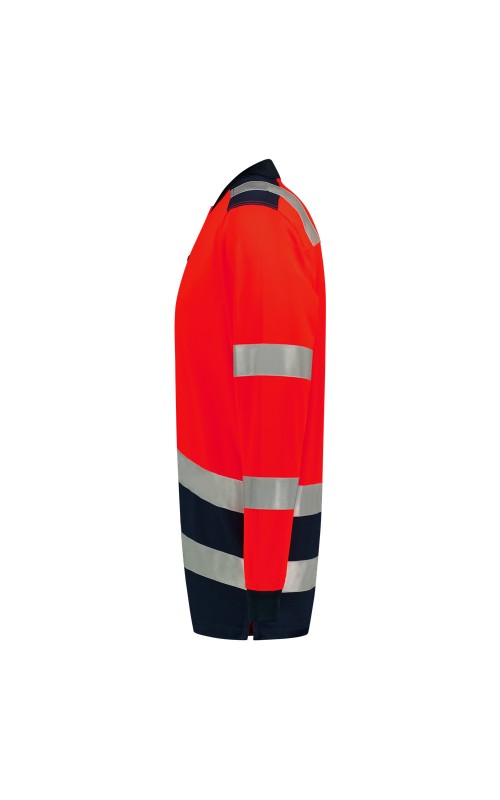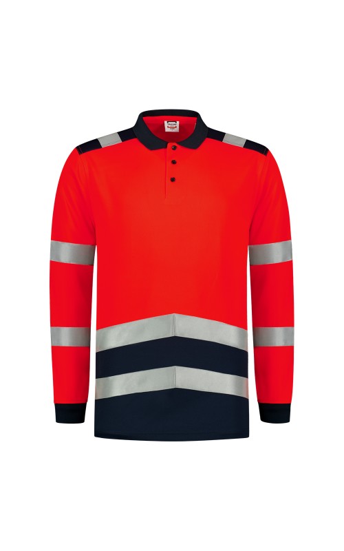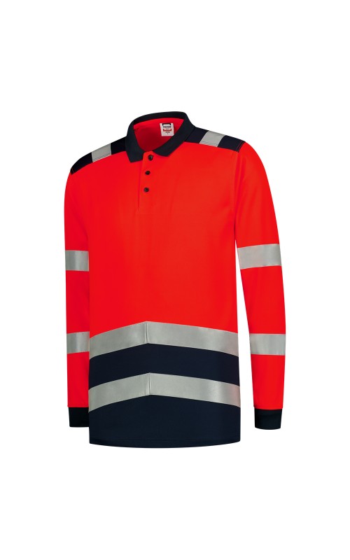 TRICORP 203008 Poloshirt High Vis Bicolor Lange Mouw fluor rood/ink