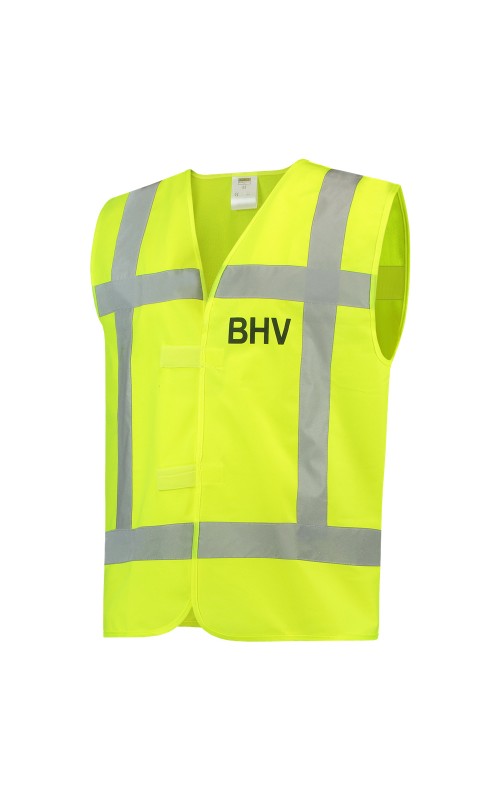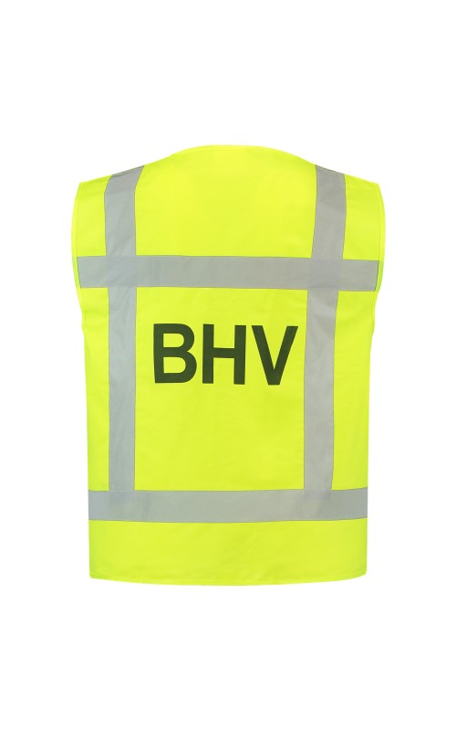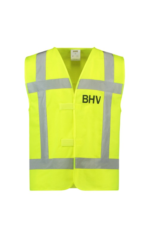 Dit veiligheidsvest is voorzien van een BHV opdruk op de borst en rug. Het product is naar wens te verstellen middels een verstelbare klittenbandsluiting. De gestikte striping voldoet aan de EN ISO 20471:2013, klasse 2. Tevens is dit vest uitgevoerd conform de richtlijnen van Rijkswaterstaat. Een verbeterpunt ten opzichte van artikel 453006 is dat dit vest op 60 graden wasbaar is en het vest na één wasbeurt weer schoon is.