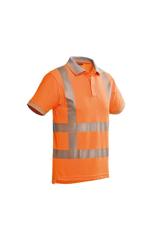 Fluoriserend veiligheids poloshirt uit de Santino HiVis-Line, 100% polyester, 220 gr/m², unisex, in een comfortabele pique kwaliteit, met contrasterende kraag en manchet, achterzijde langer, achterzijde langer, UPF 50+, gecertificeerd conform EN ISO 13688 en EN ISO 20471 klasse 2/3, 3M Scotchlite reflectie tape is horizontaal en verticaal in RWS configuratie gesealed.