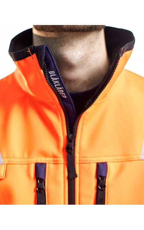 Modern softshell jack in High Vis kleuren om in gezien te worden! De jas heeft een hoge, brede kraag, die echt comfortabel is dankzij de zachte fleecestof! Zorg voor hoge zichtbaarheid, of u nu in de bouw, transportsector of industrie werkt. EN ISO 20471-certificaat, klasse 2 - verhoogt de zichtbaarheid op het werk.