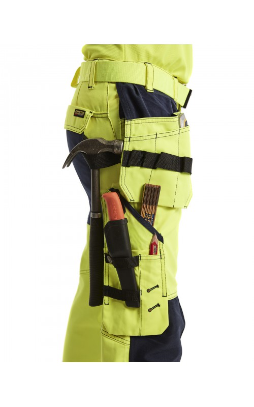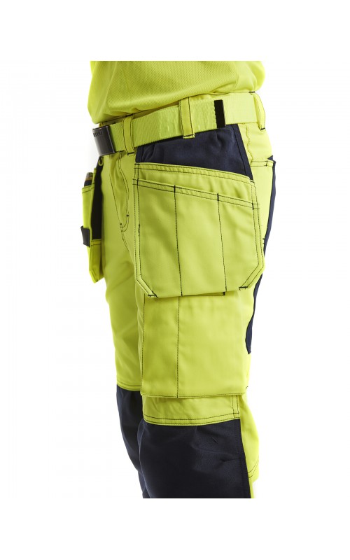 High Vis werkbroek die geschikt is voor zware werkzaamheden op gevaarlijke werkplekken. De broek is flexibel en sterk, met elastische taille en stretchmateriaal voor een comfortabele pasvorm. Voorzien van verschillende functionele zakken en goed ontworpen details die de prestaties verbeteren. De kniebeschermerszak is ontworpen voor knie-inlegstuk 4027 en versterkt met CORDURA®-stretchstof voor meer comfort bij het werken op je knieën. Gecertificeerd volgens EN ISO 20471 klasse 2, beschermende kleding met hoge zichtbaarheid.