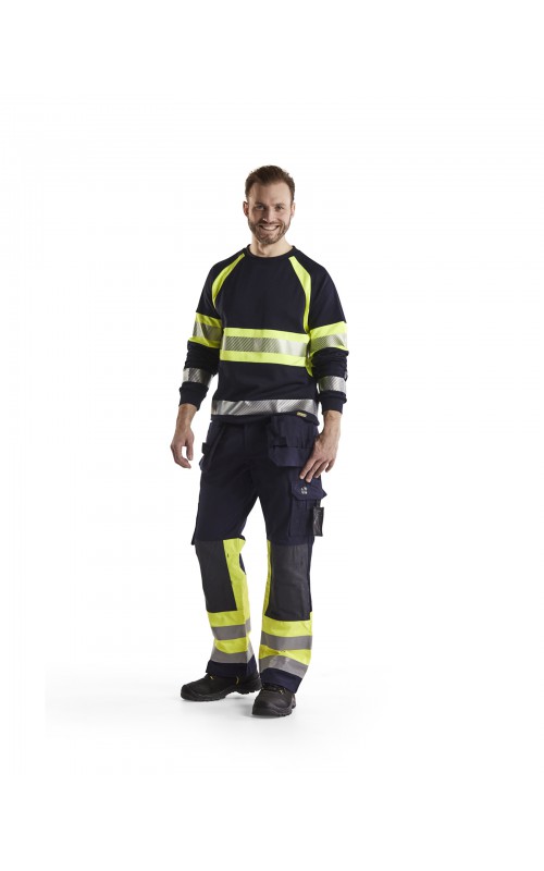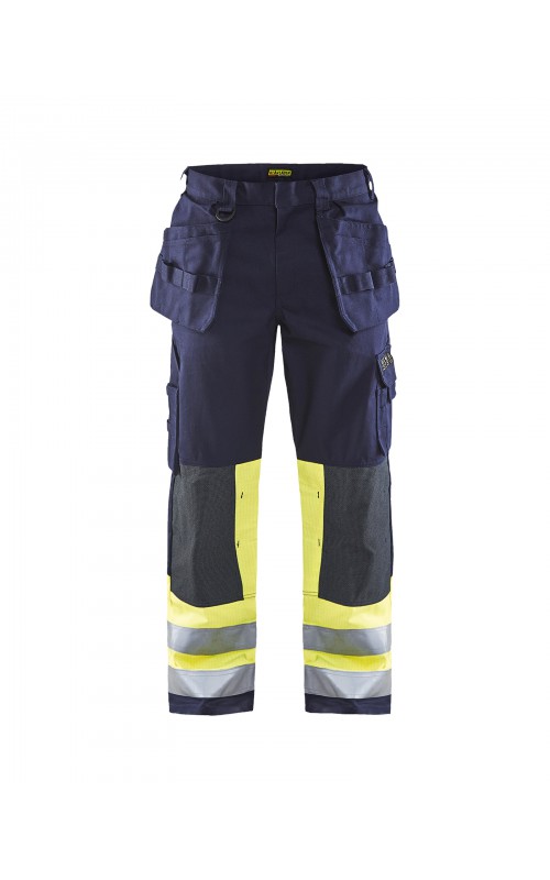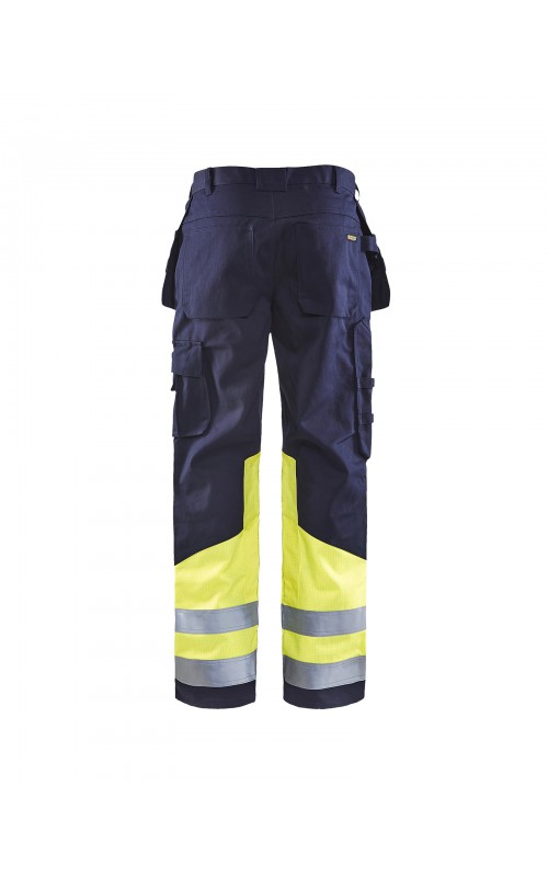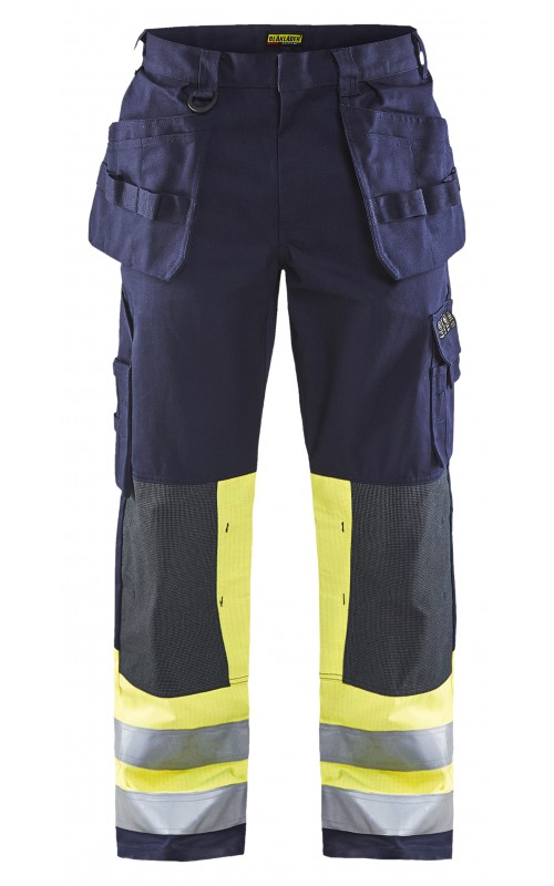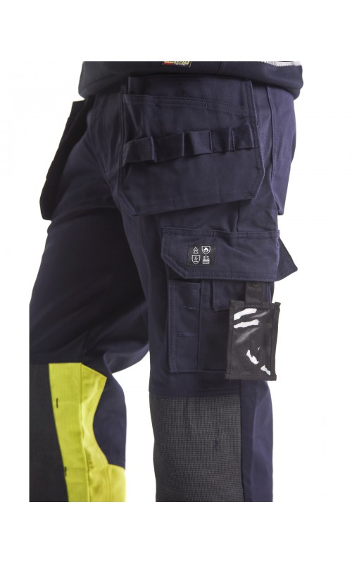 Multinorm werkbroek biedt de ultieme bescherming bij het werken in extreme omstandigheden. Een geavanceerde werkbroek met vaste spijkerzakken in duurzaam materiaal en kniebeschermerszakken van CORDURA®/Kevlar®, in twee hoogtes verstelbaar. Industrieel wasbaar. Gecertificeerd volgens EN ISO 20471, Klasse 1. EN 1149-5, IEC 61482-2 Klasse 1. EN ISO 11612 A1, A2 B1, C1, F1. ATPV: 11,0 cal/cm², HAF: 82,0%.