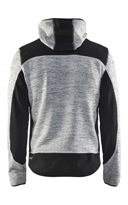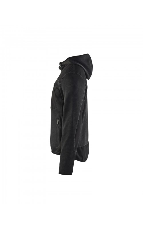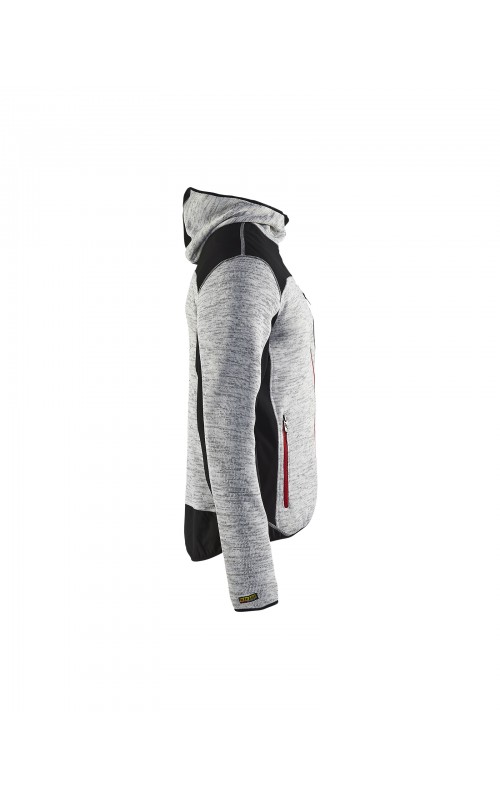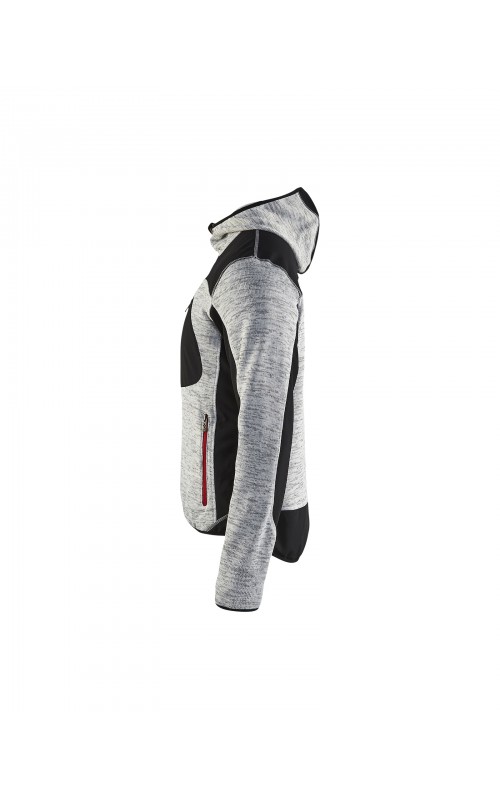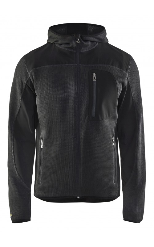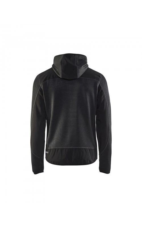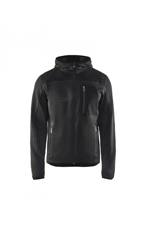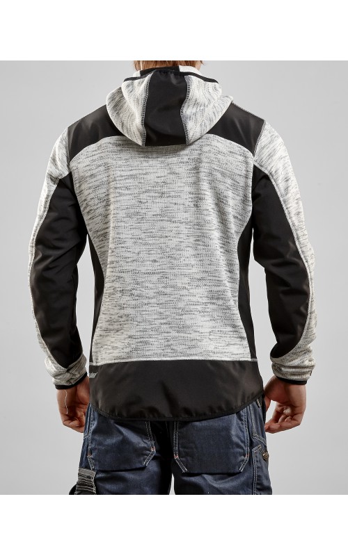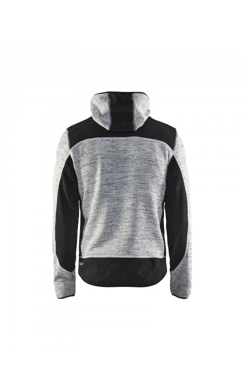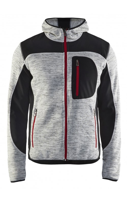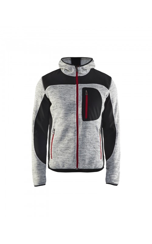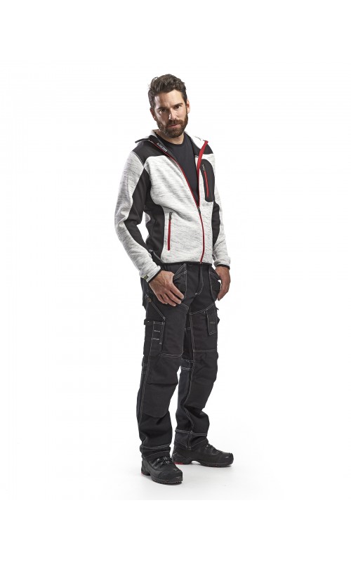 Populair gebreid vest met capuchon in cool design en comfortabel materiaal. Versterkt met softshell materiaal op de ellebogen, schouders en rug voor hogere duurzaamheid. Het vest is voorzien van praktische zakken en is geschikt voor zowel werk als vrije tijd. Ook beschikbaar in damesmodel in de kleur grijs en antraciet - model 4931.