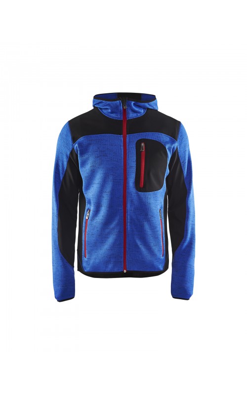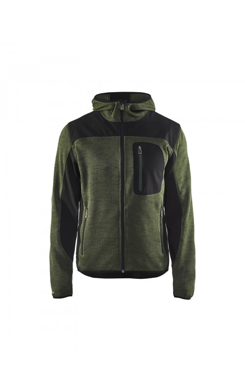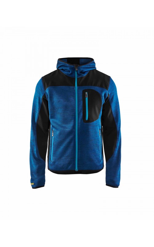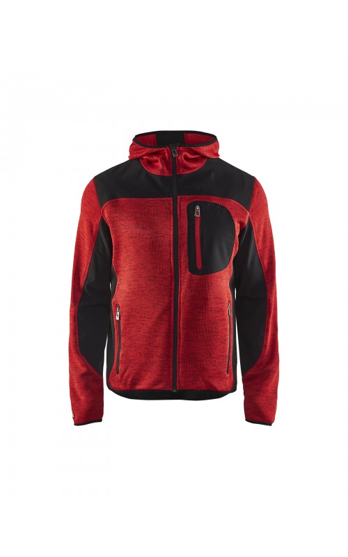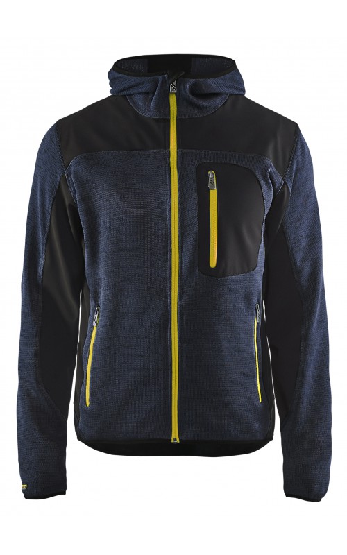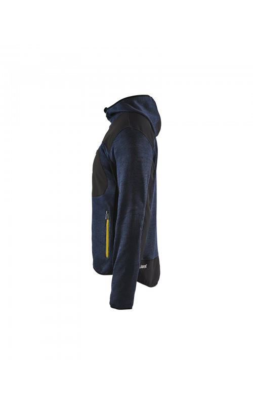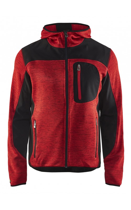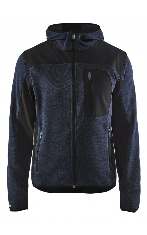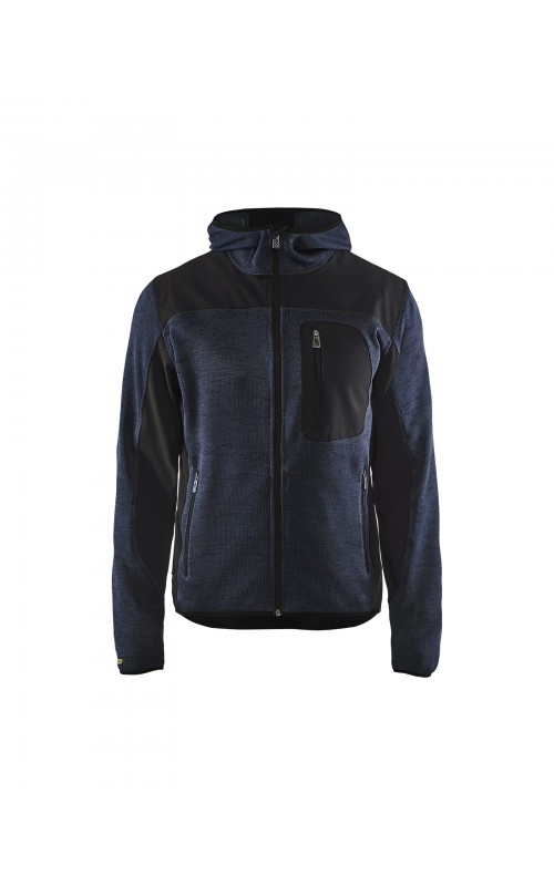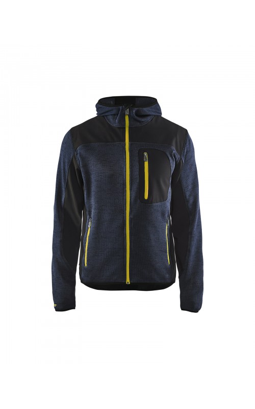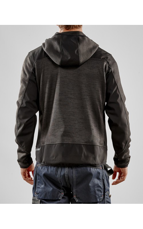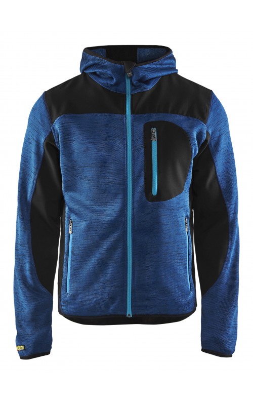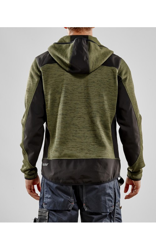 Populair gebreid vest met capuchon in cool design en comfortabel materiaal. Versterkt met softshell materiaal op de ellebogen, schouders en rug voor hogere duurzaamheid. Het vest is voorzien van praktische zakken en is geschikt voor zowel werk als vrije tijd. Ook beschikbaar in damesmodel in de kleur grijs en antraciet - model 4931.