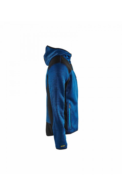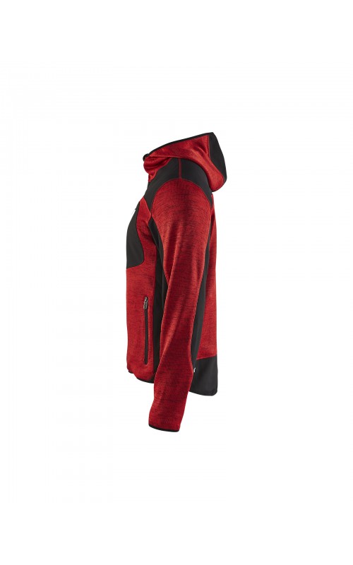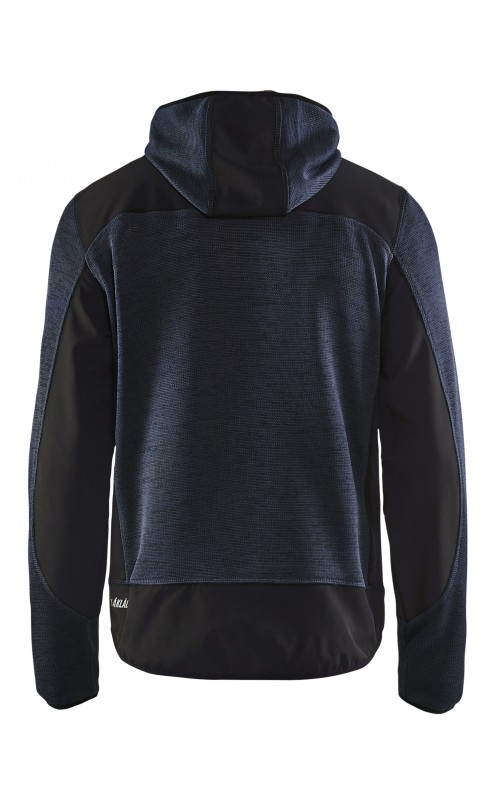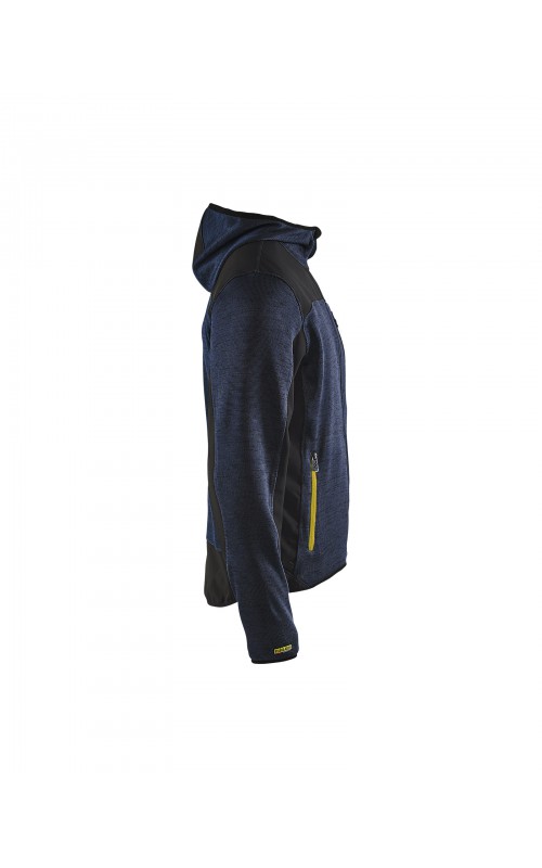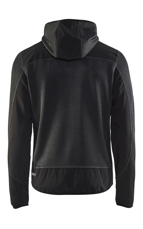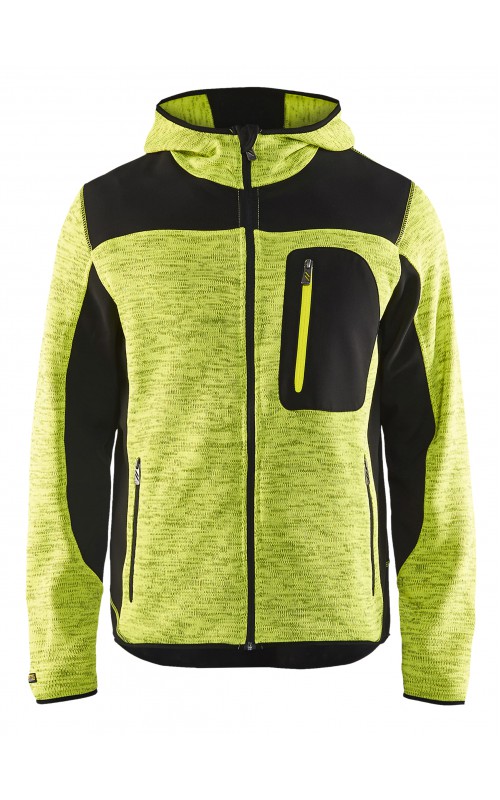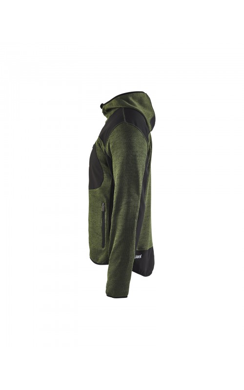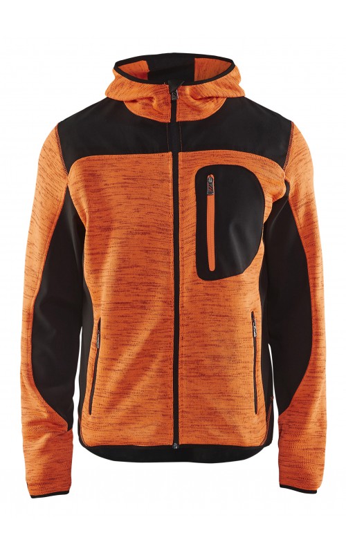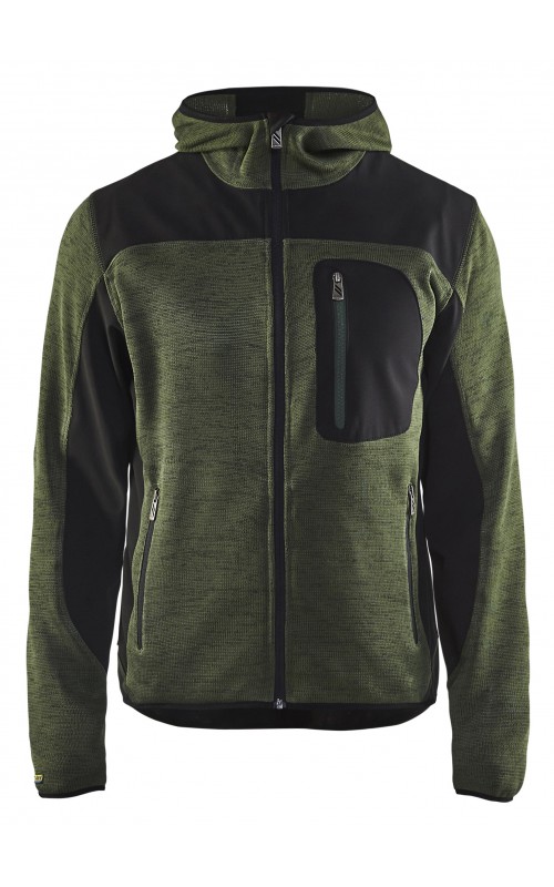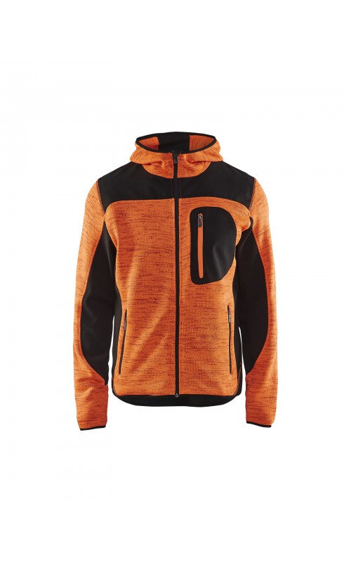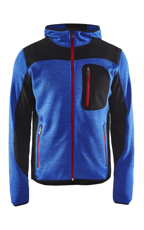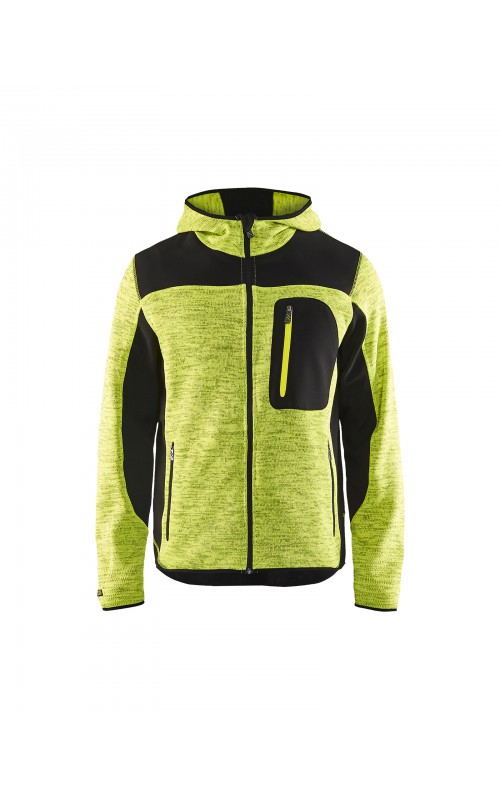 Populair gebreid vest met capuchon in cool design en comfortabel materiaal. Versterkt met softshell materiaal op de ellebogen, schouders en rug voor hogere duurzaamheid. Het vest is voorzien van praktische zakken en is geschikt voor zowel werk als vrije tijd. Ook beschikbaar in damesmodel in de kleur grijs en antraciet - model 4931.
