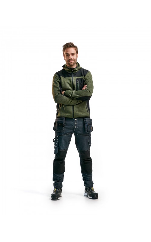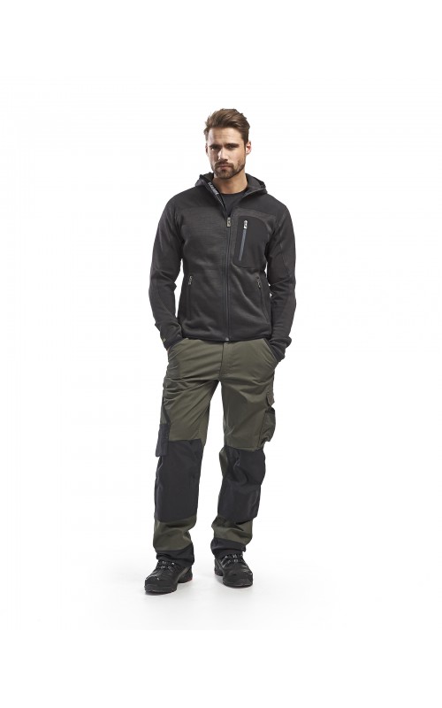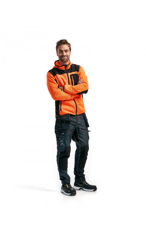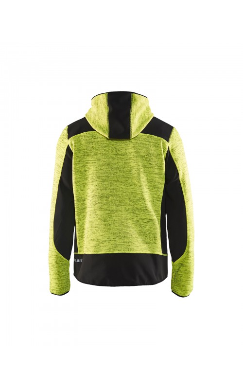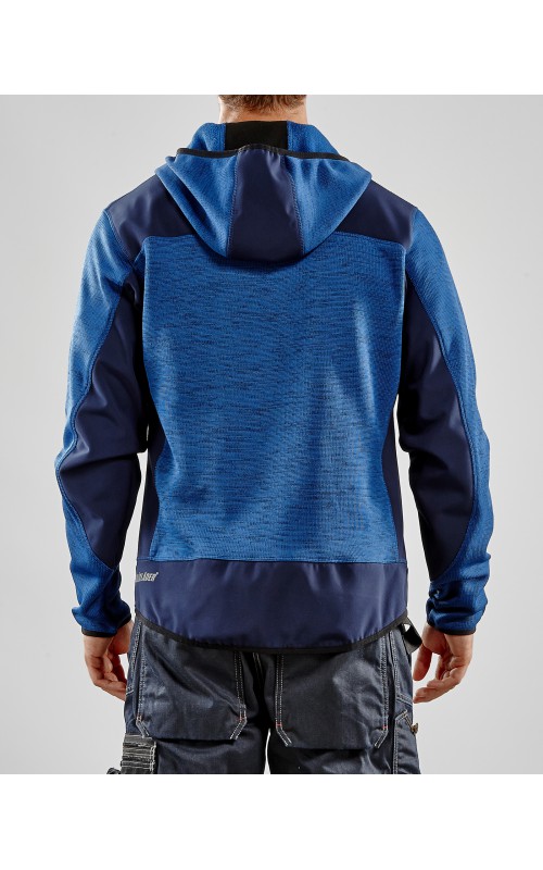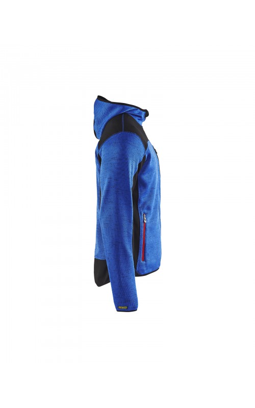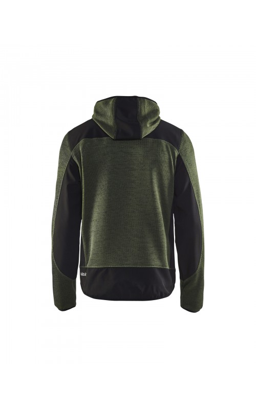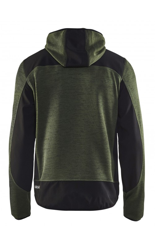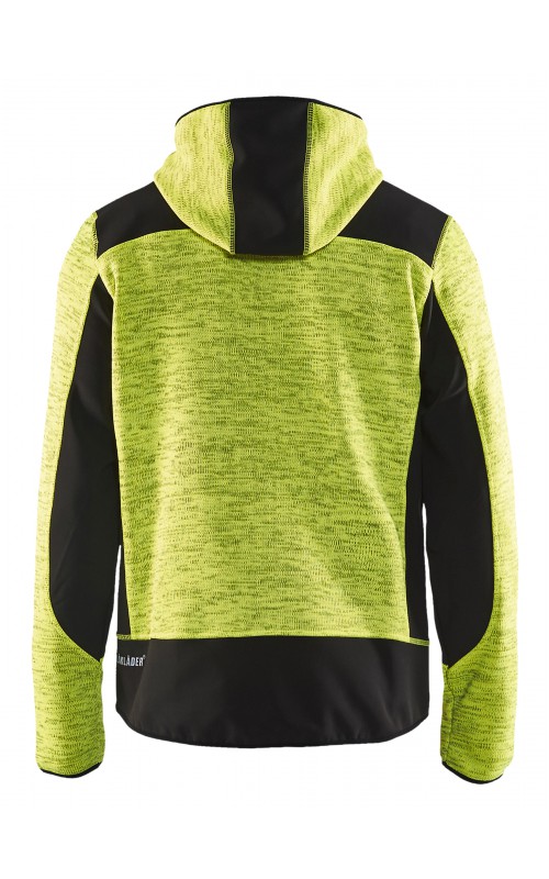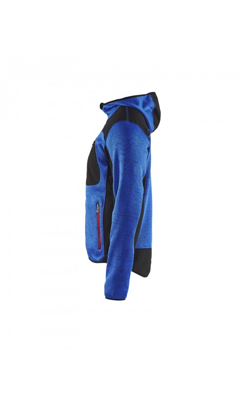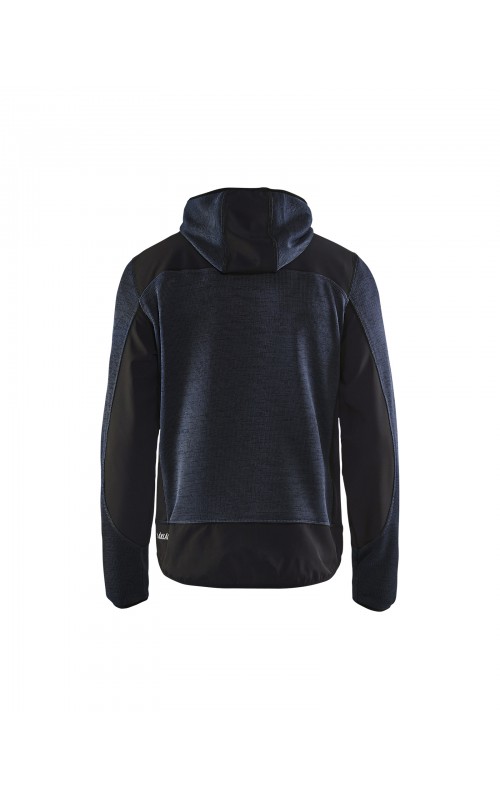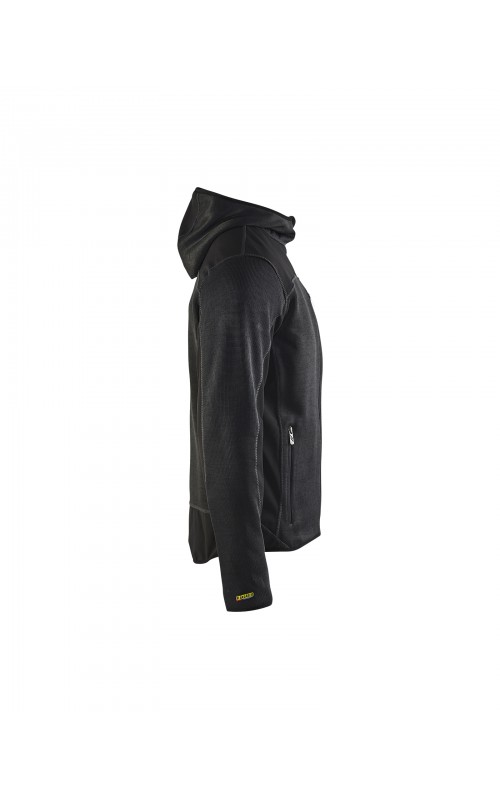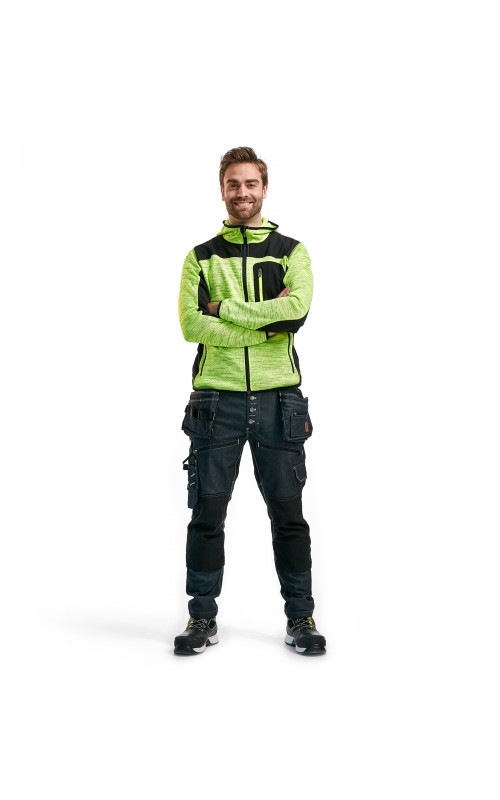 Populair gebreid vest met capuchon in cool design en comfortabel materiaal. Versterkt met softshell materiaal op de ellebogen, schouders en rug voor hogere duurzaamheid. Het vest is voorzien van praktische zakken en is geschikt voor zowel werk als vrije tijd. Ook beschikbaar in damesmodel in de kleur grijs en antraciet - model 4931.