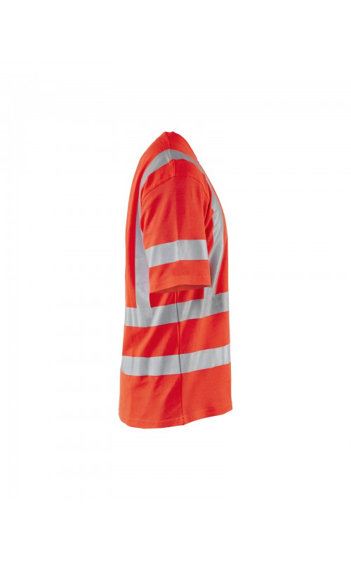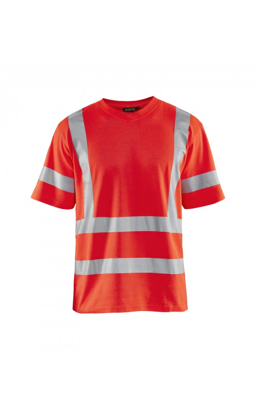 T-shirt met korte mouwen en V-hals. Stof met mechanische anti-geur functie. Gecertificeerd volgens EN ISO 20471 Klasse 2 XS-M, Klasse 3 L-4XL beschermende kleding met hoge zichtbaarheid en EN 13758-2 UPF 40+ UV-beschermende eigenschappen.