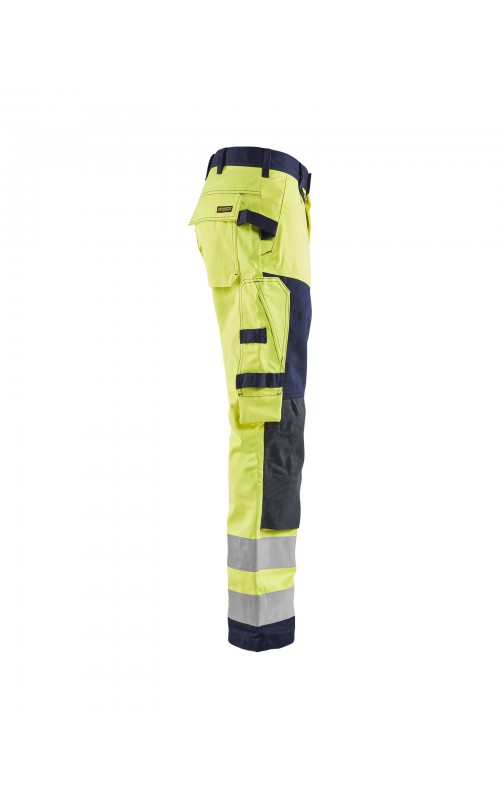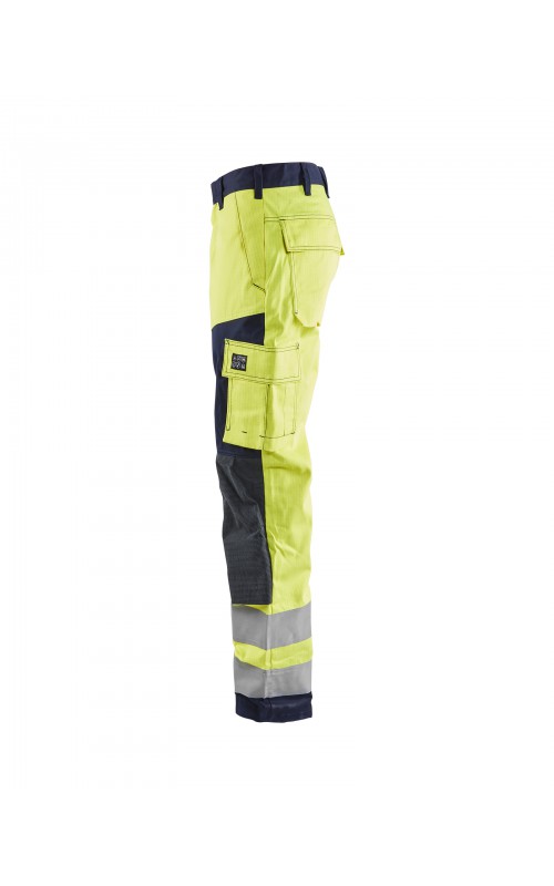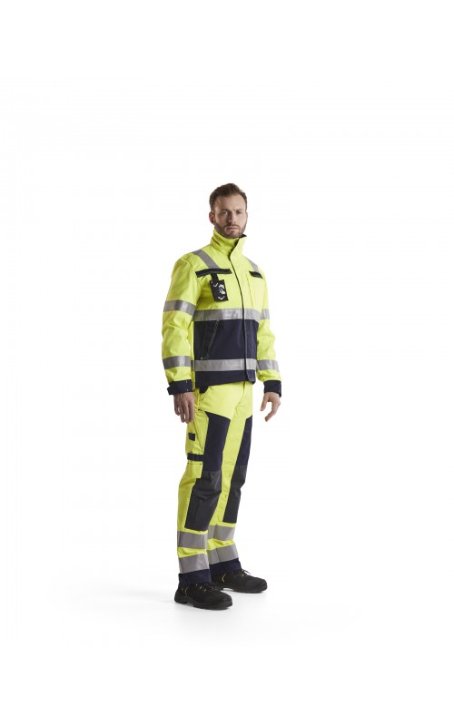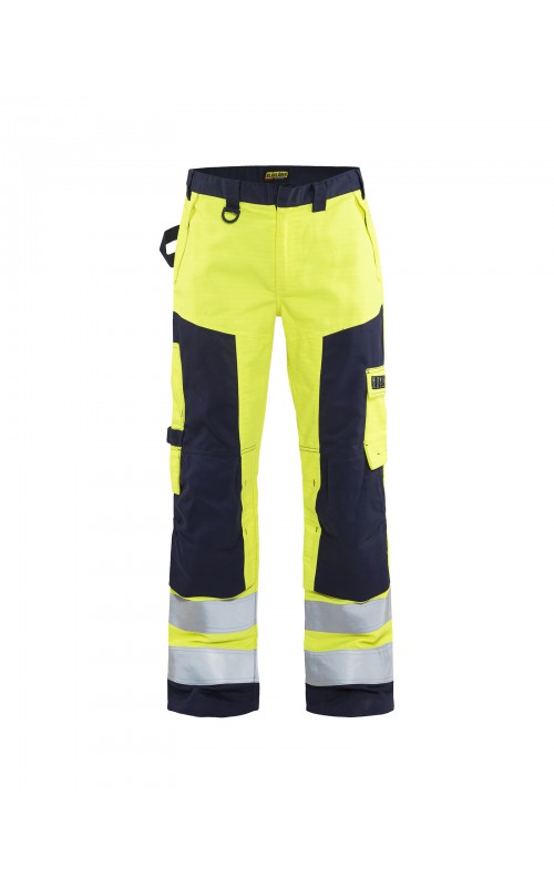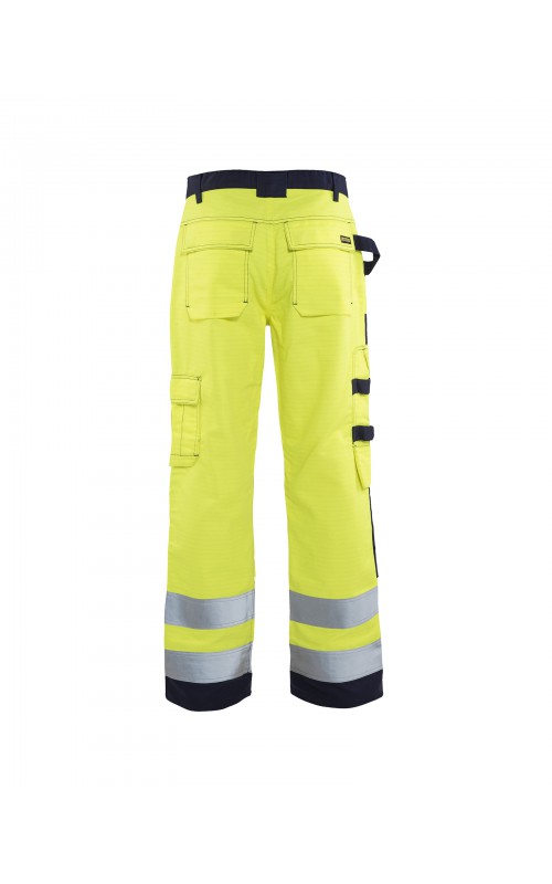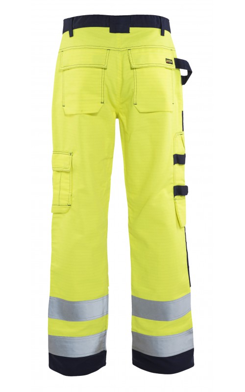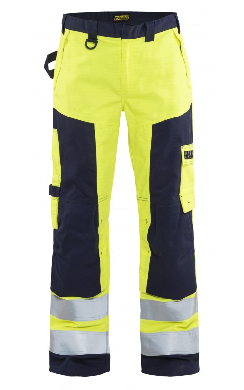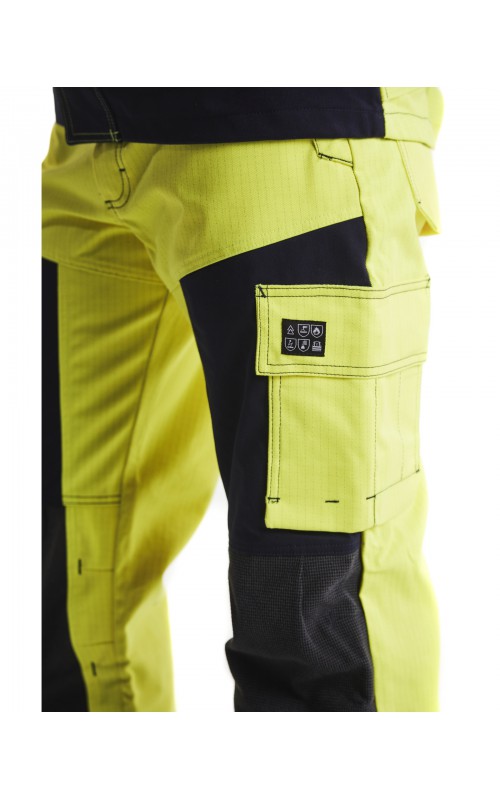 Multinorm werkbroek biedt de ultieme bescherming tijdens werkzaamheden in extreme werkomgevingen. Een geavanceerde werkbroek in een duurzaam materiaal met slimme pocket oplossingen en kniebeschermerszakken van CORDURA®/Kevlar®, in twee hoogtes verstelbaar. Industrieel wasbaar. Beschermt tegen vloeibare chemicaliën. Gecertificeerd volgens EN ISO 20471, Klasse 2. EN 1149-5, IEC 61482-2 Klasse 1. EN ISO 11611 Klasse 1 A1+A2. EN ISO 11612 A1, A2, B1, C1, E3, F1. EN ISO 13034 PB [6]. ATPV: 11,0 cal/cm², HAF: 82,0%.