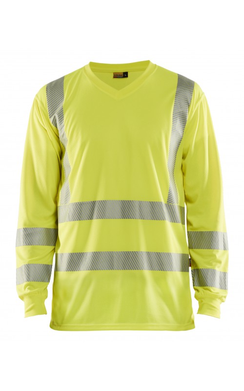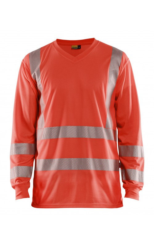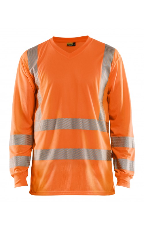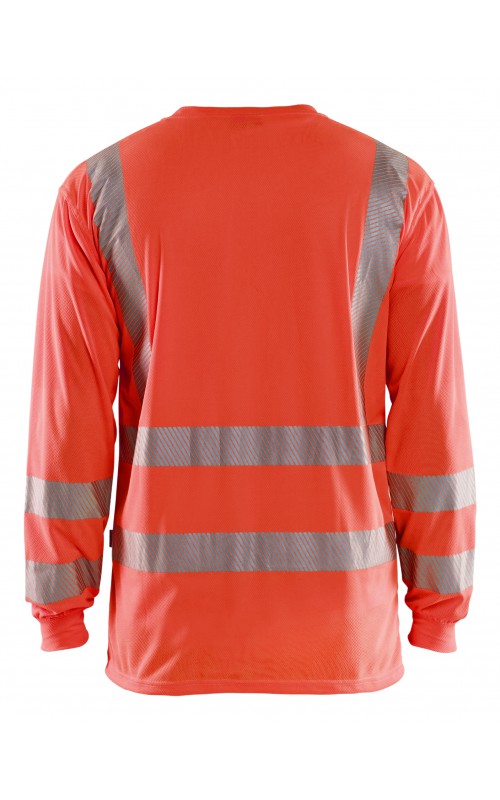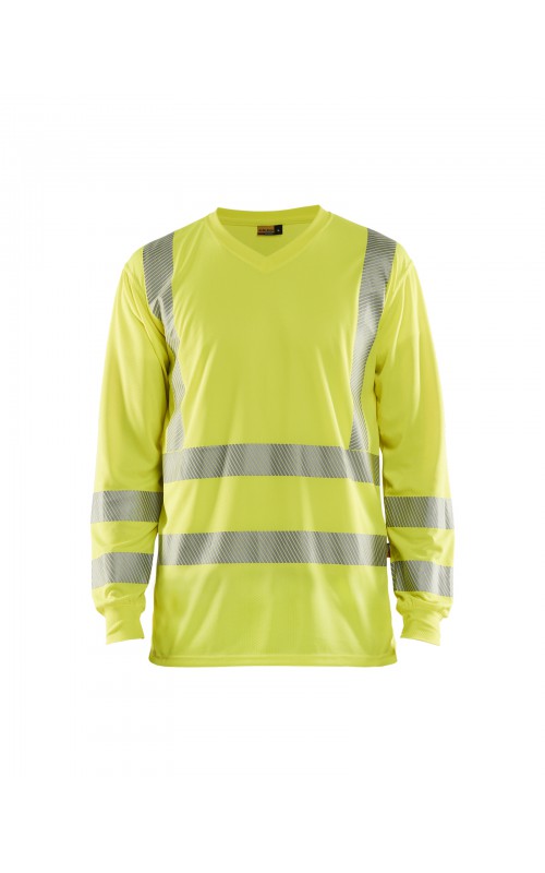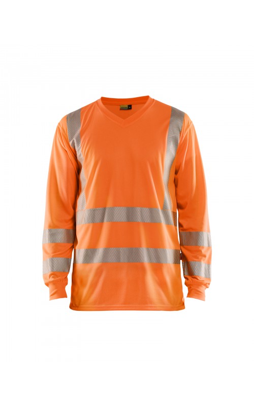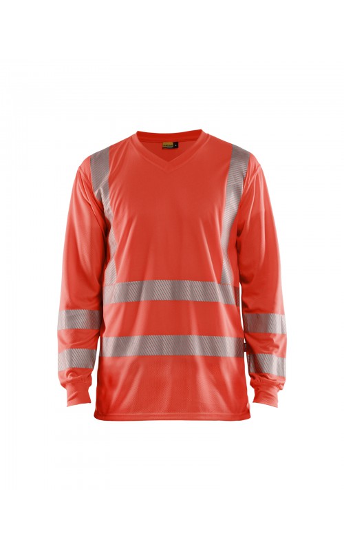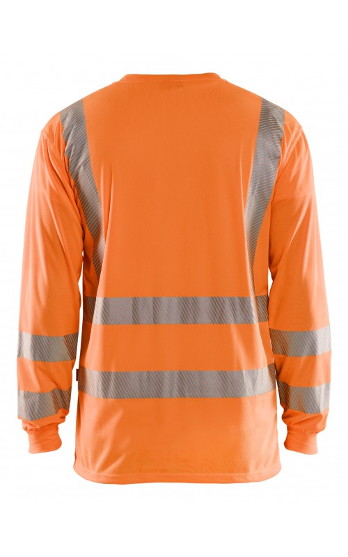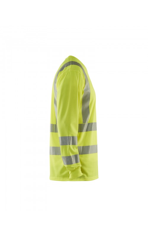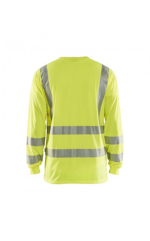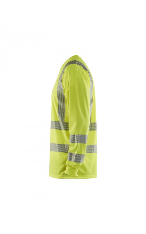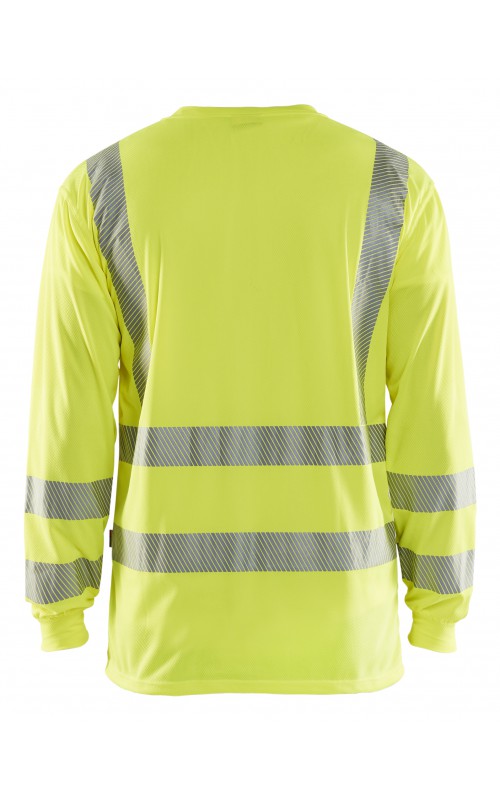 High Vis T-shirt met lange mouwen van vochtafvoerende materiaal. Het is voorzien van gesneden transferreflectie met stretch voor een optimale mobiliteit en UPF 40+. Gecertificeerd volgens EN ISO 20471, XS Klasse 2, S-4XL Klasse 3, hoge zichtbaarheidskleding en EN 13758-2 UPF 40+, voor UV beschermende eigenschappen.