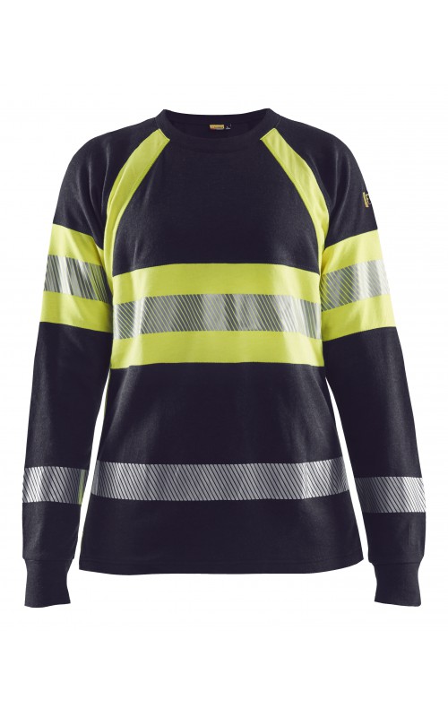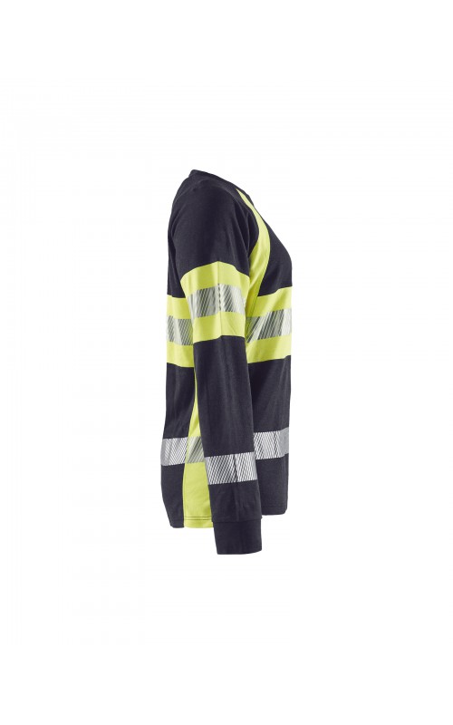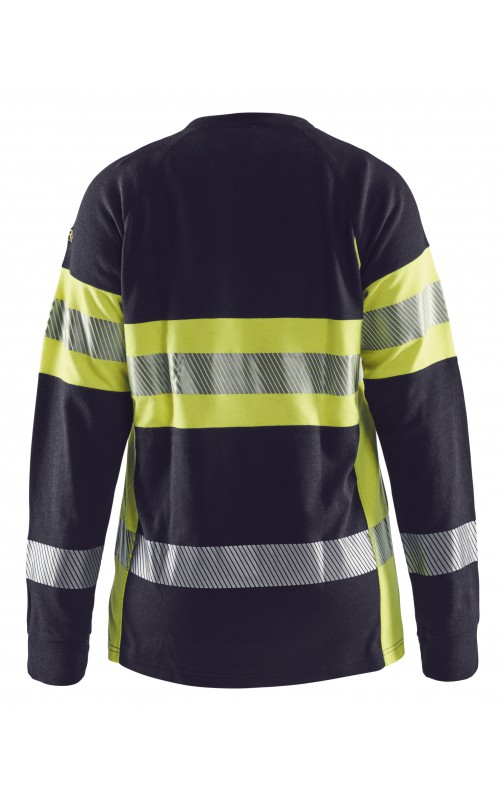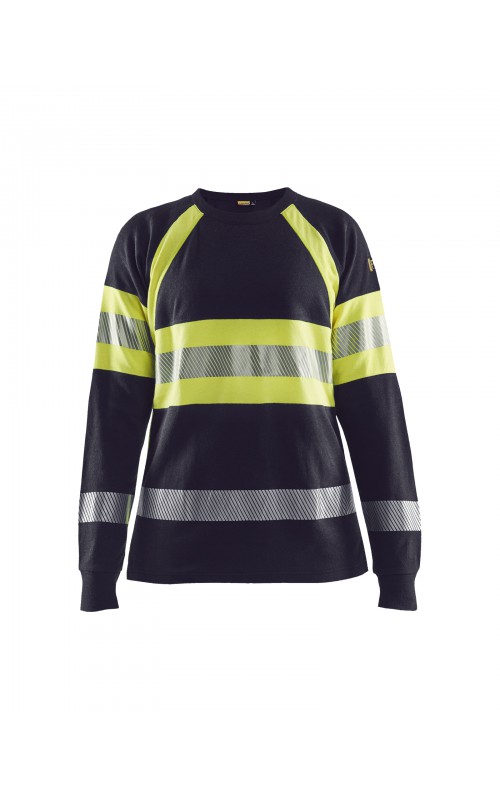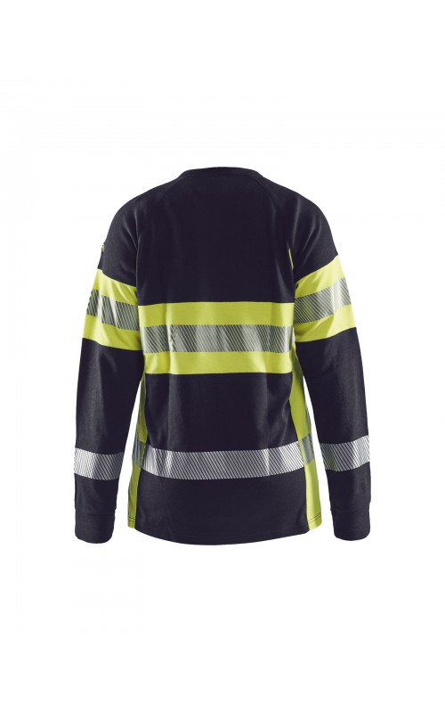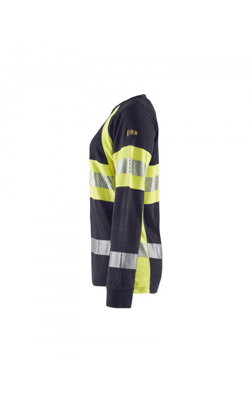 Een T-shirt met lange mouwen met damespasvorm gemaakt van een robuuste stof met zeer beschermende eigenschappen en in High Vis Klasse 1. Het zachte, uitstekende comfort maakt dit een vrijwel onverslaanbaar kledingstuk. Gecertificeerd volgens de EN 1149-5 en EN ISO 20471 normen, Klasse 1. EN ISO 11612 A1,B1,C1,E1,F1. IEC 61482-2, Klasse 1. ATPV:13,1 cal/cm².