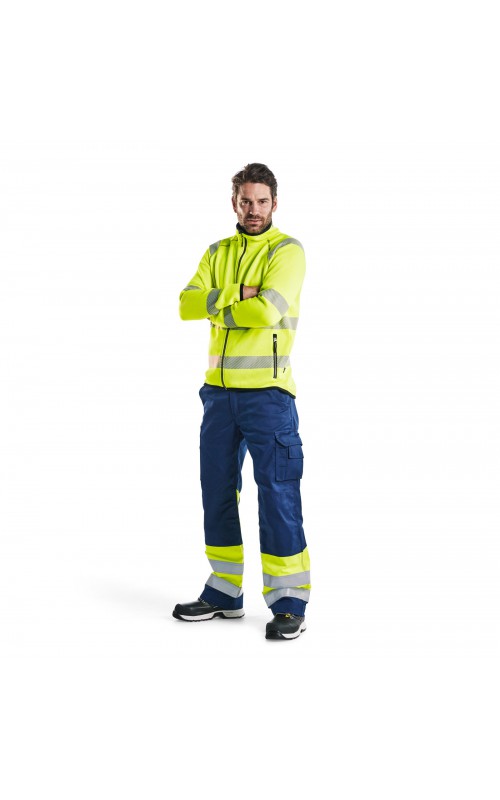 Comfortabel, gebreid vest in High Vis materiaal met ritssluiting aan de voorzijde en in voorzakken. Voor optimale pasvorm is het vest voorzien van elastische boorden aan de manchetten en boord onderlangs, en een verlengd achterpand. De kraag is met fleece gevoerd. Gesneden reflectie voor goede ventilatie en elasticiteit. Gecertificeerd volgens EN ISO 20471, Klasse 3.