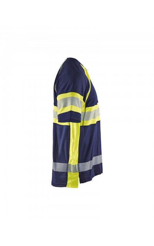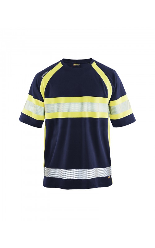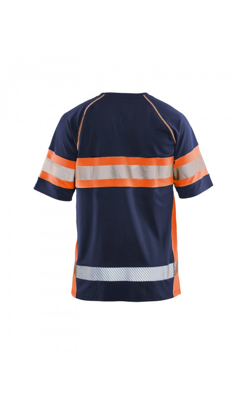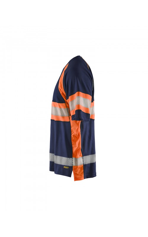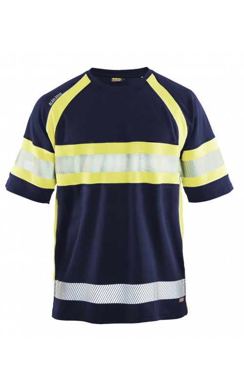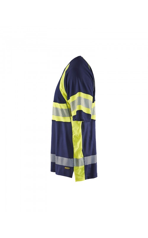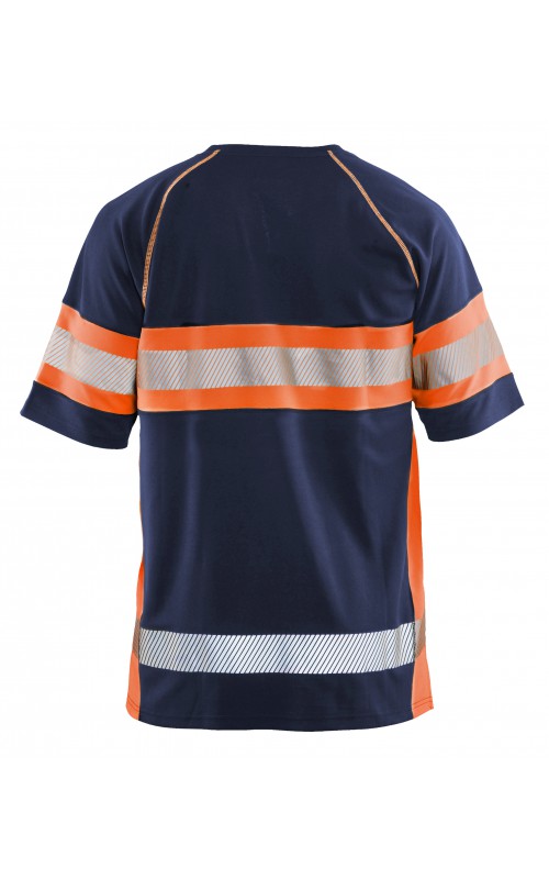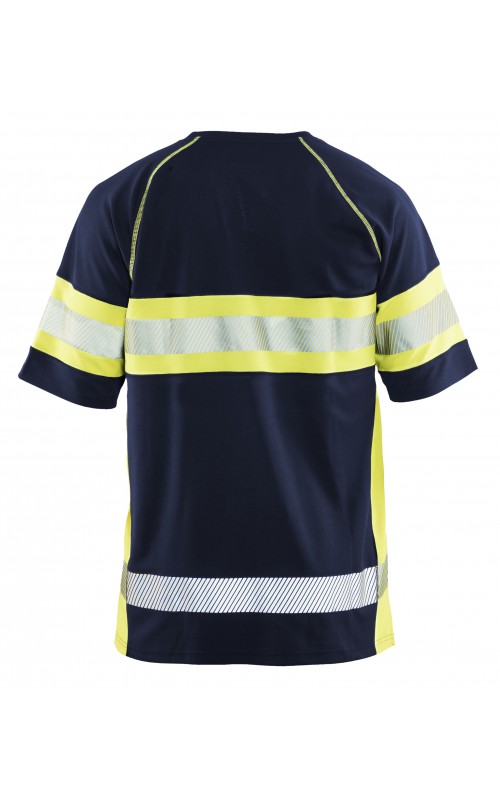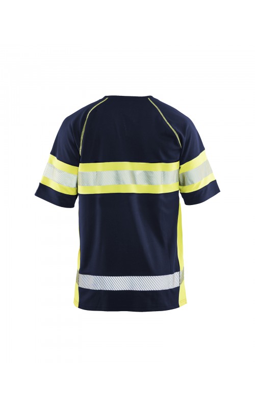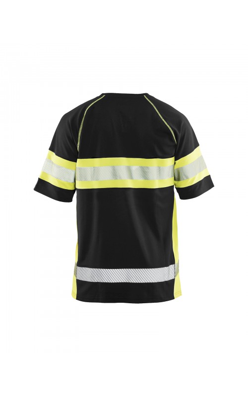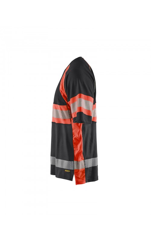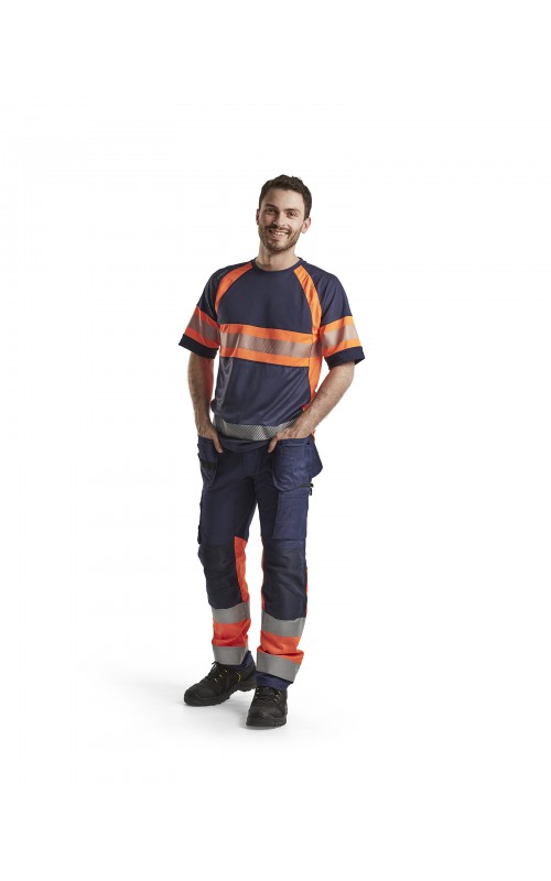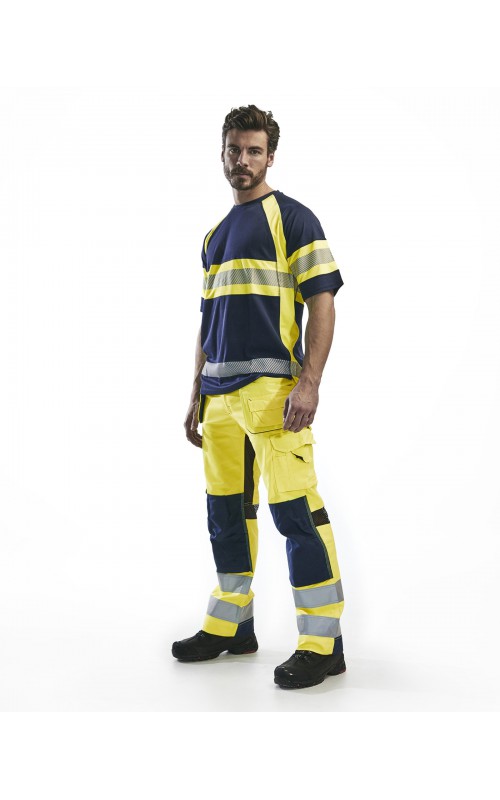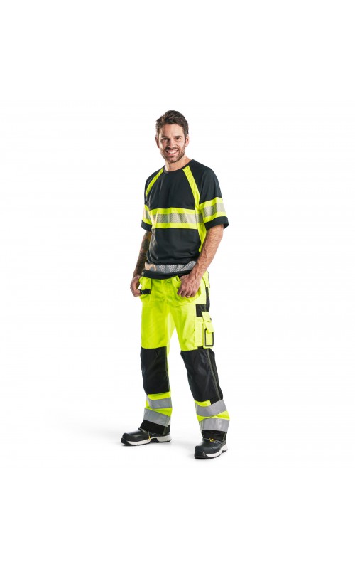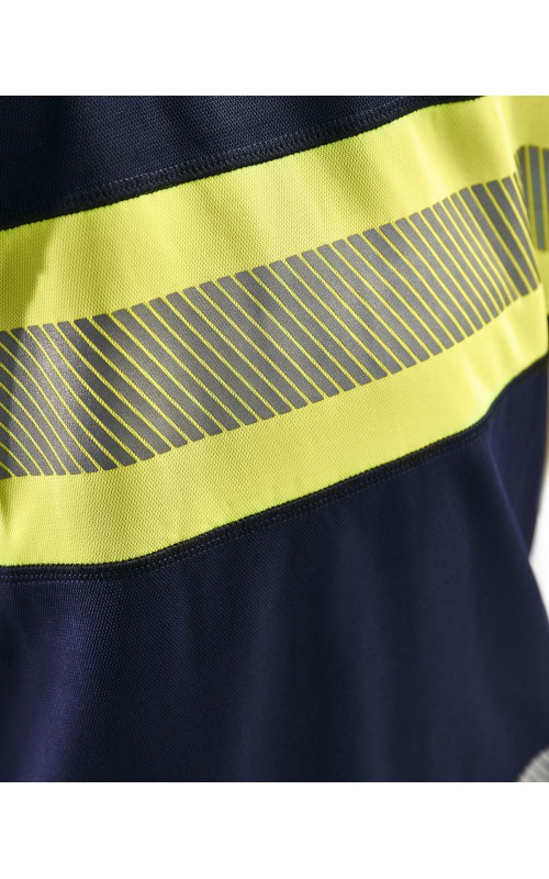 Zacht en comfortabel High Vis T-shirt met gesneden transferreflectie voor extra goede stretcheigenschappen en luchtdoorlatendheid. Het model heeft een ronde hals met versterkte schoudernaad en halsopening. Het pique-materiaal biedt UV-bescherming en bevat ook bamboe-houtskool dat slechte geur tegengaat. Het textiel voldoet aan de eisen van EN 13758-2 UPF 40+ en is gecertificeerd volgens EN ISO 20471 klasse 1, combinatie-certificering groep D.