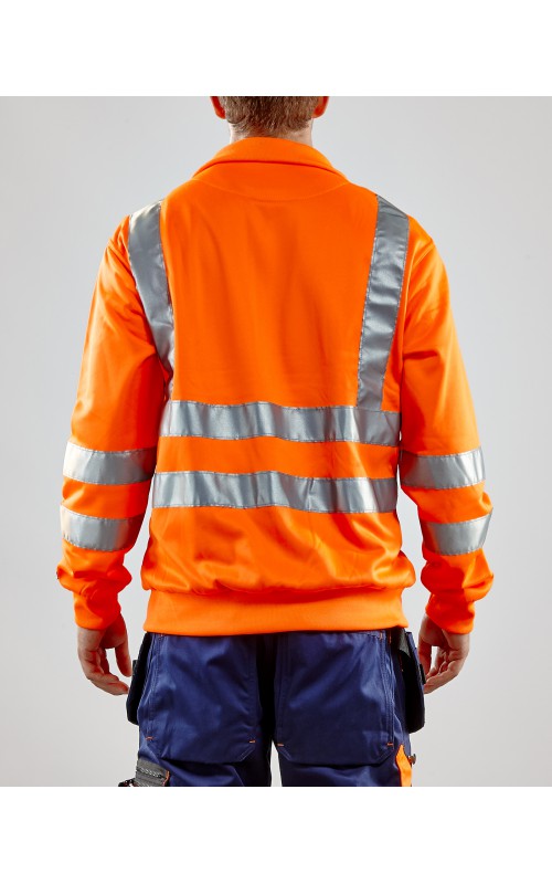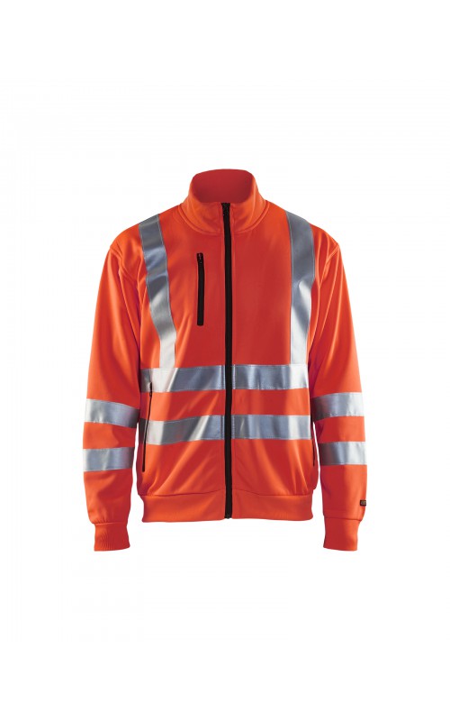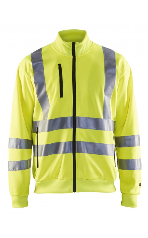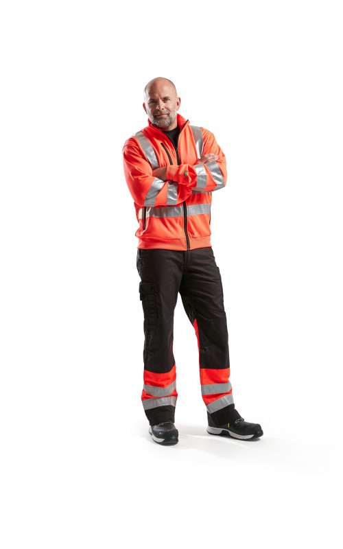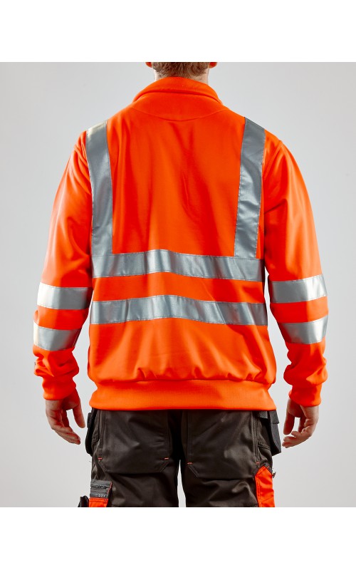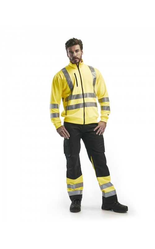 High Vis sweatshirt met perfecte pasvorm, helemaal rondom voorzien van reflectietape zodat u vanuit alle richtingen wordt gezien. Het sweatshirt heeft een ritssluiting, twee zakken aan de voorzijde en één zak op de borst. Ontworpen voor maximaal werkcomfort en gecertificeerd volgens EN 20471, Klasse 2 (XX-S), Klasse 3 (M->), beschermende kleding met hoge zichtbaarheid.