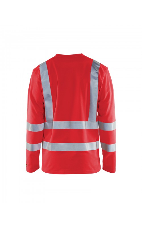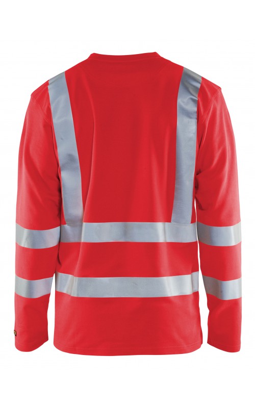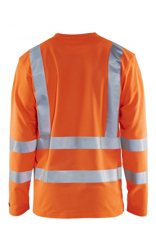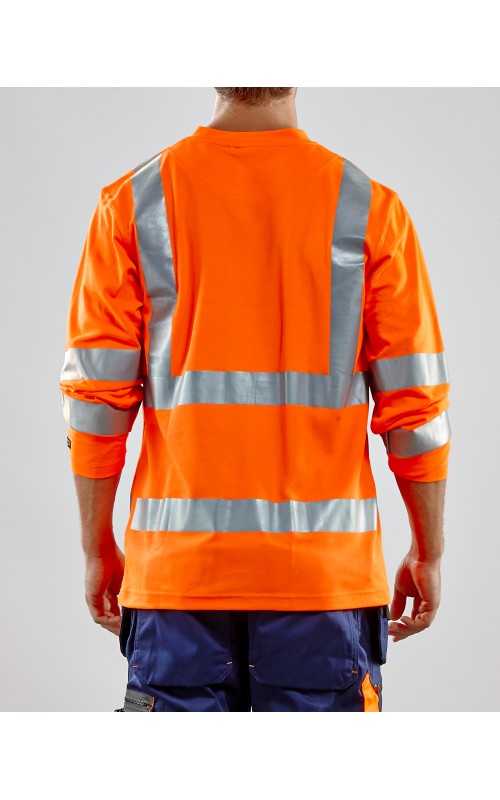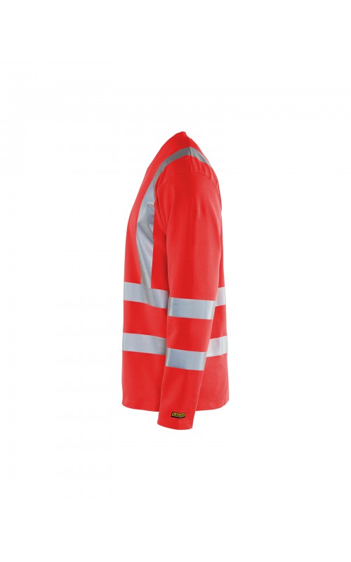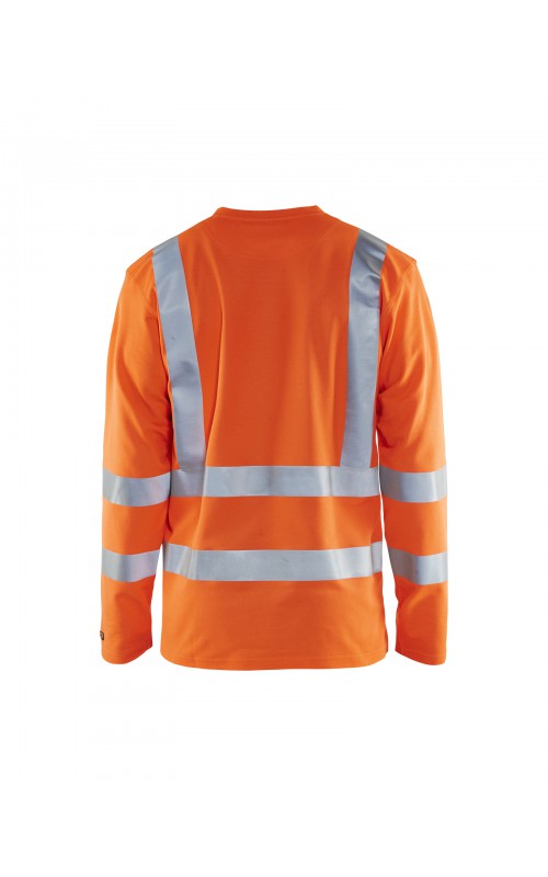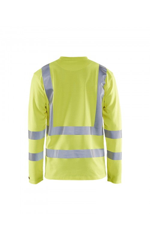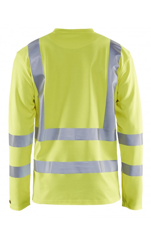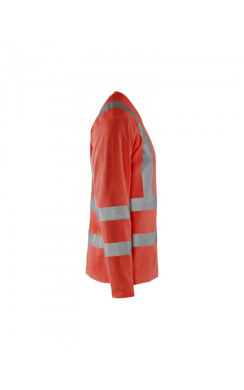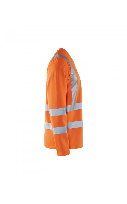 High Vis T-shirt lange mouw met V-hals in een nieuw en comfortabel materiaal. Het kledingstuk heeft katoen aan de binnenkant en synthetische materialen aan de buitenkant wat zorgt voor een hoge mate van comfort. De stof neutraliseert geuren en beschermt tegen UV-stralen. De reflectie is rekbaar waardoor het kledingstuk extra elastisch en comfortabel is om in te werken. EN gecertificeerd voor zowel UV als High-Visibility EN13758-2 en EN ISO 20471, klasse 3.