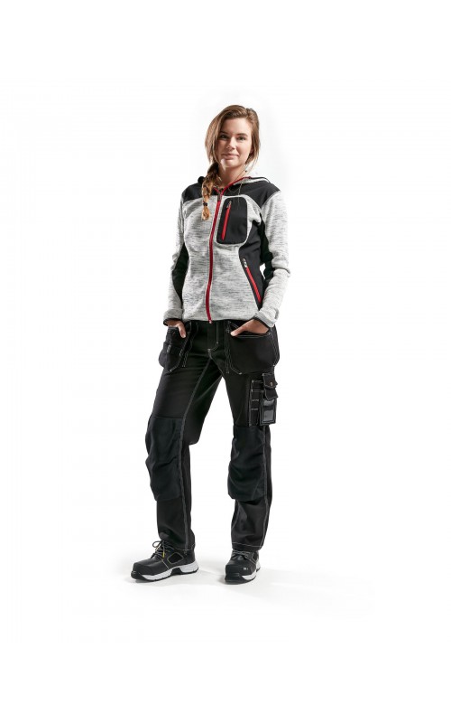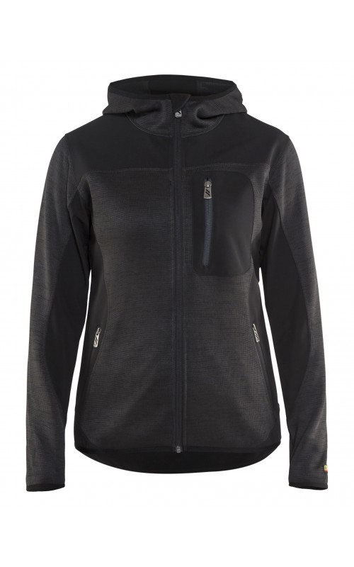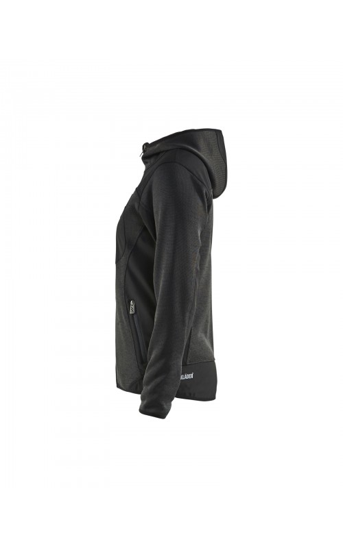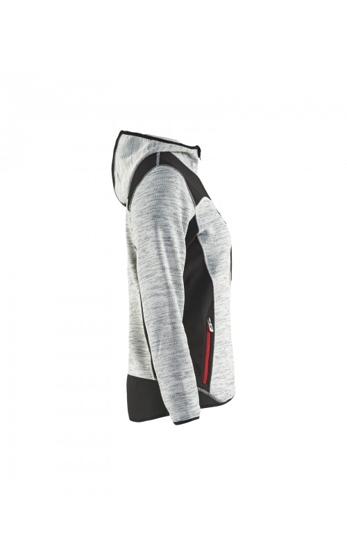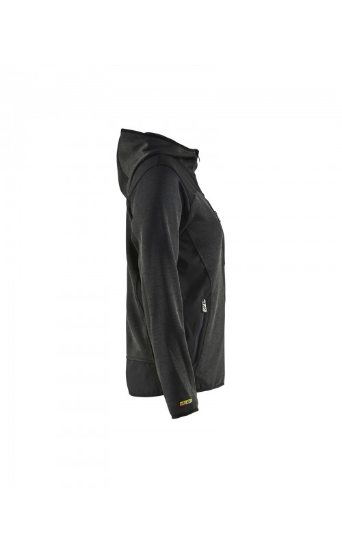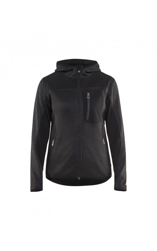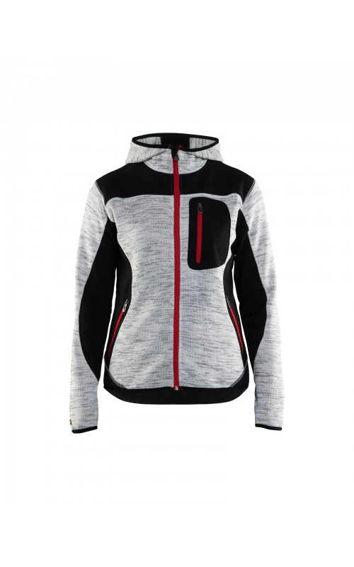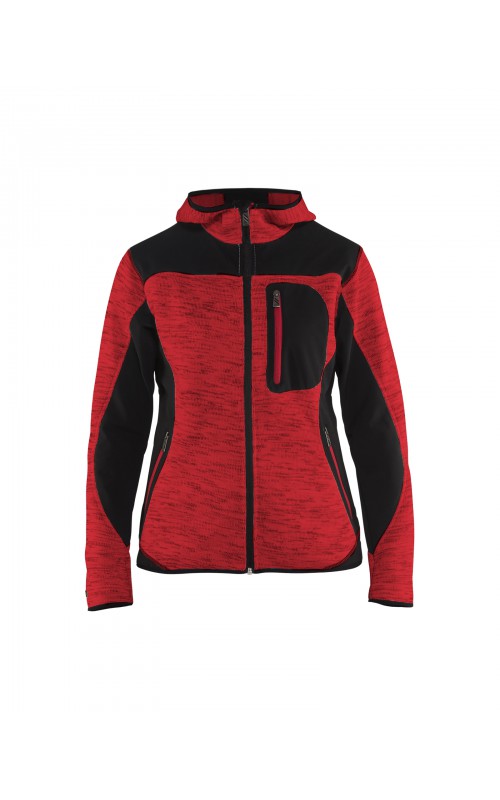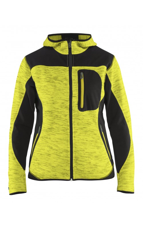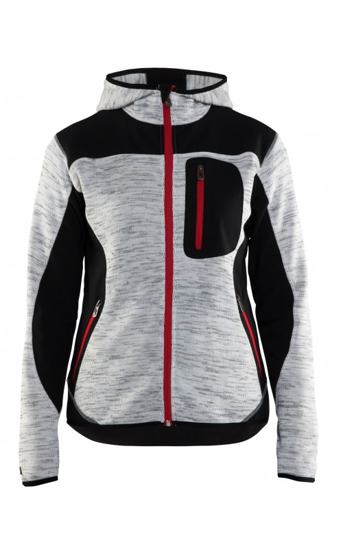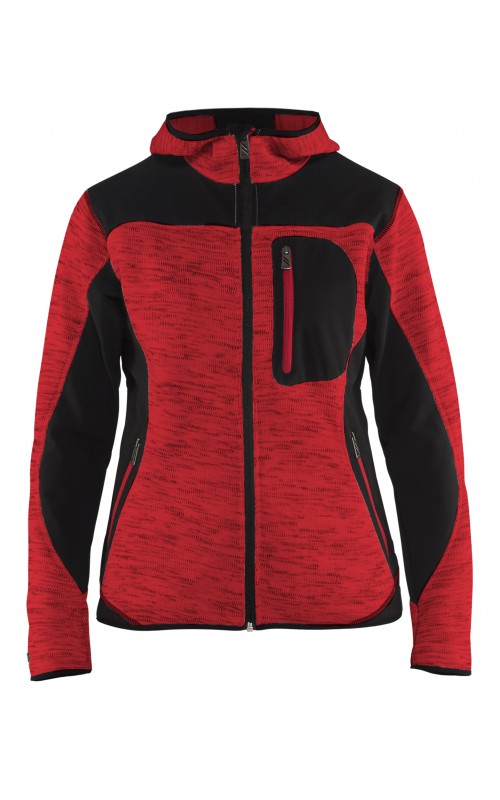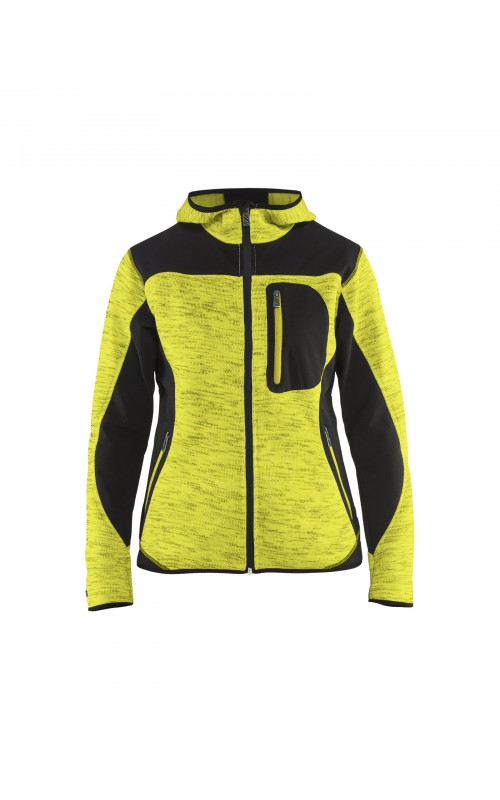 Populair gebreid vest met capuchon in cool design en comfortabel materiaal. Versterkt met softshell materiaal op de ellebogen, schouders en rug voor hogere duurzaamheid. Het vest is voorzien van praktische zakken en is geschikt voor zowel werk als vrije tijd.