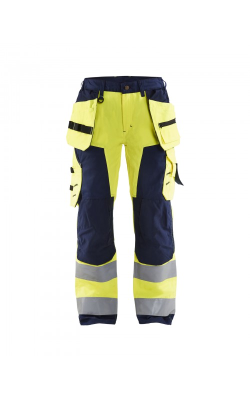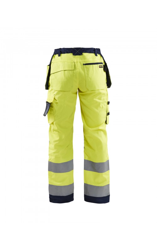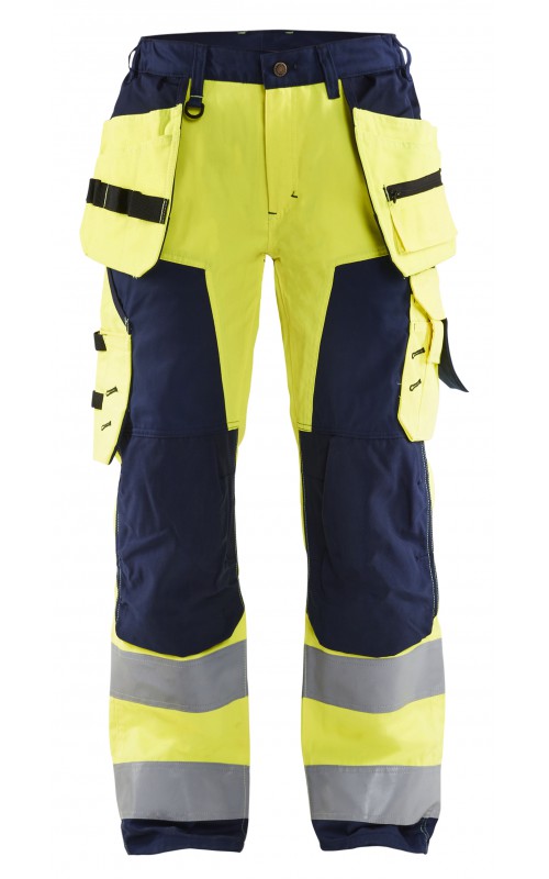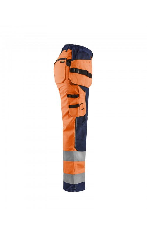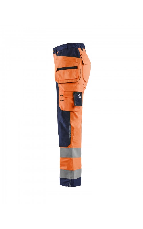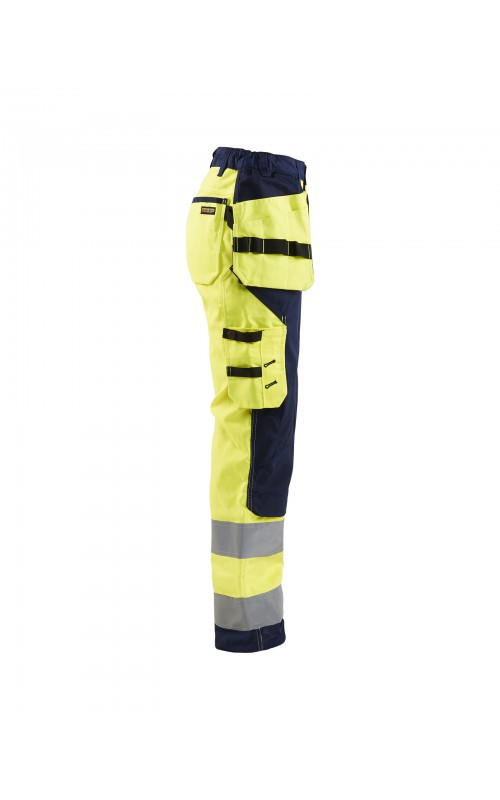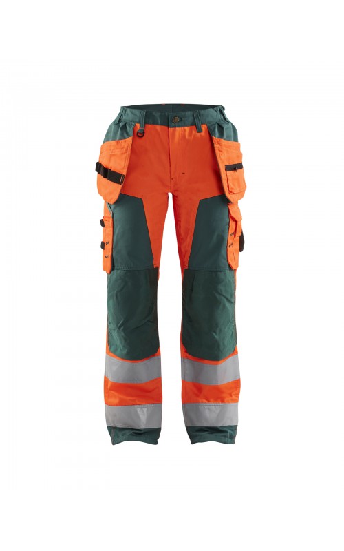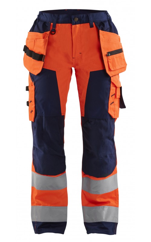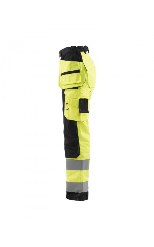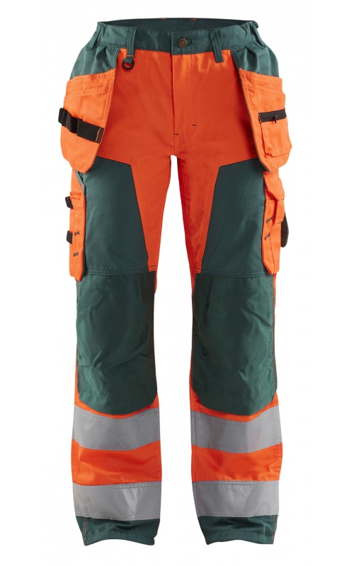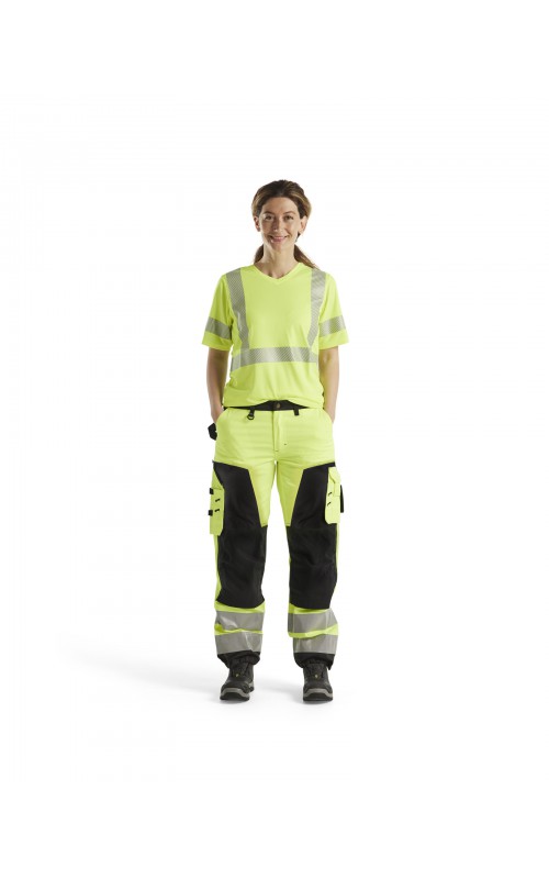 Deze High Vis Dames werkbroek met spijkerzakken is zeer slijtvast, waterafstotend en koel. Hoog comfort, geweldige functionaliteiten en CORDURA® versterkingen op de knieën. De werkbroeken hebben een elastische taille voor een comfortabele pasvorm en zijn voorzien van trekkoord in de zomen van de broekspijp. Gecertificeerd volgens EN ISO 20471, klasse 2.