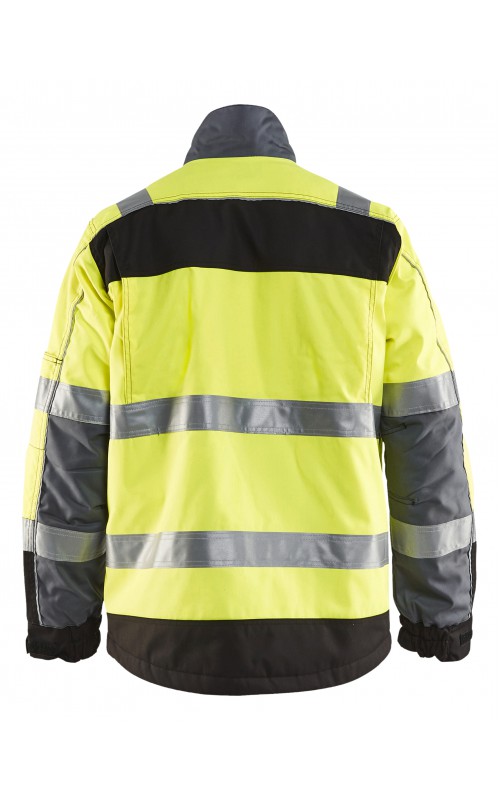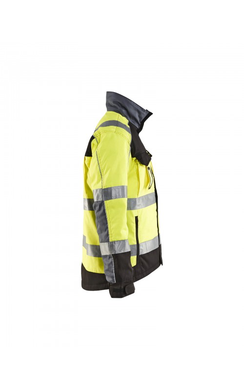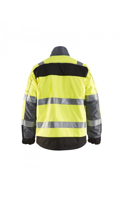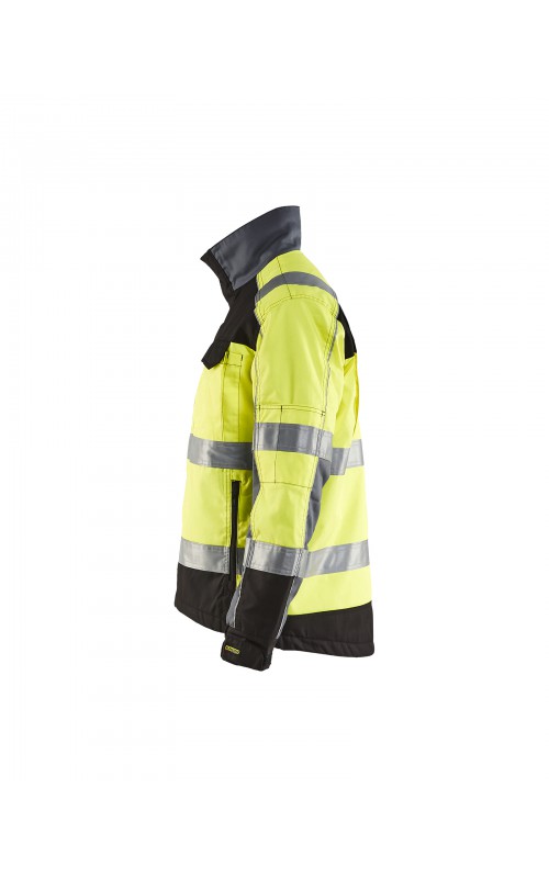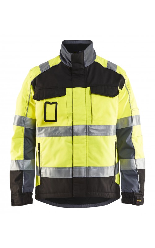 Make sure you’re seen. Our range of hi-vis clothing provides advanced personal protection. All the usual functionality and work comfort, while making sure you can be seen. This jacket has many smart pocket solutions on the sleeves, chest and inside. You can also for example adjust the waist width, sleeve drawstrings and back pleat to optimise comfort. Certified to EN 471 Class 2, for high visibility clothing. EN 342 protection against cold.