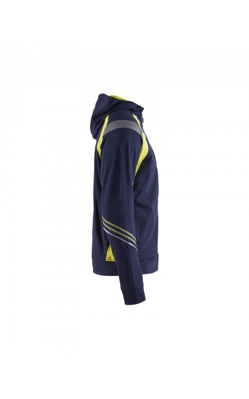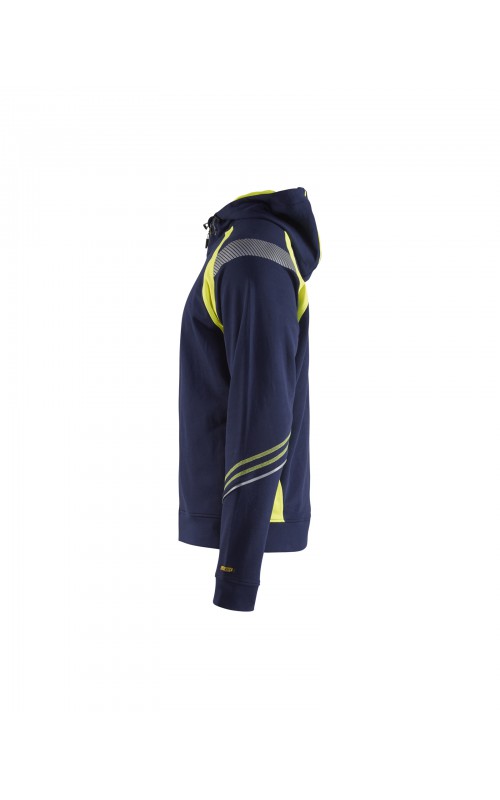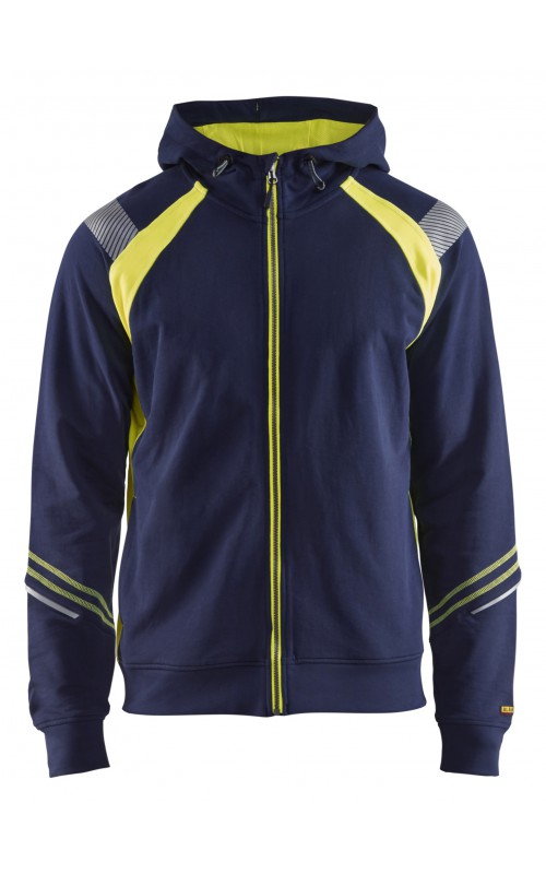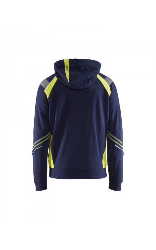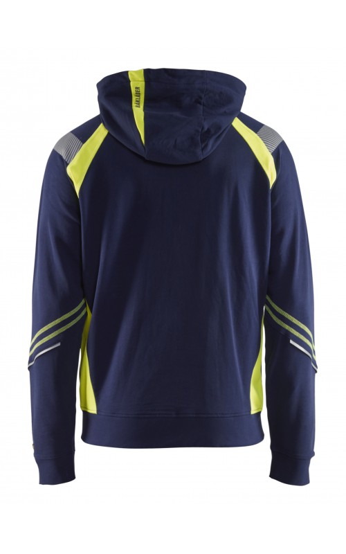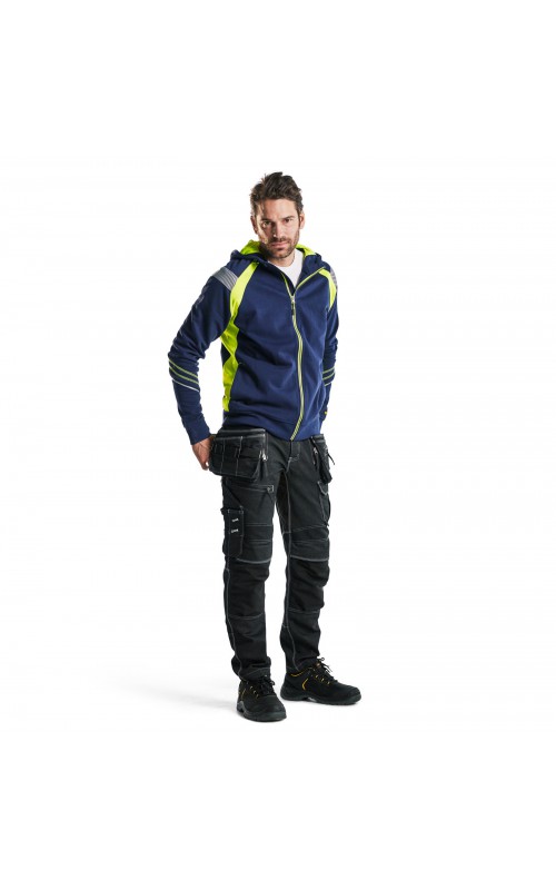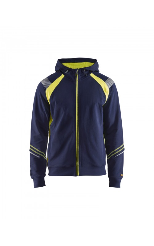 Zachte en comfortabele hoodie gemaakt van 100% katoen. Voorzien van reflectie en High Vis details voor verhoogde zichtbaarheid. Met zoom onderlangs, de mouwen en in de binnenkant een telefoonzakje met rits. Het donkere deel van het sweatshirt is gemaakt van 100% katoen en het High Vis oppervlakte van 100% polyester.