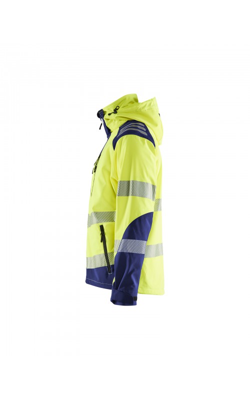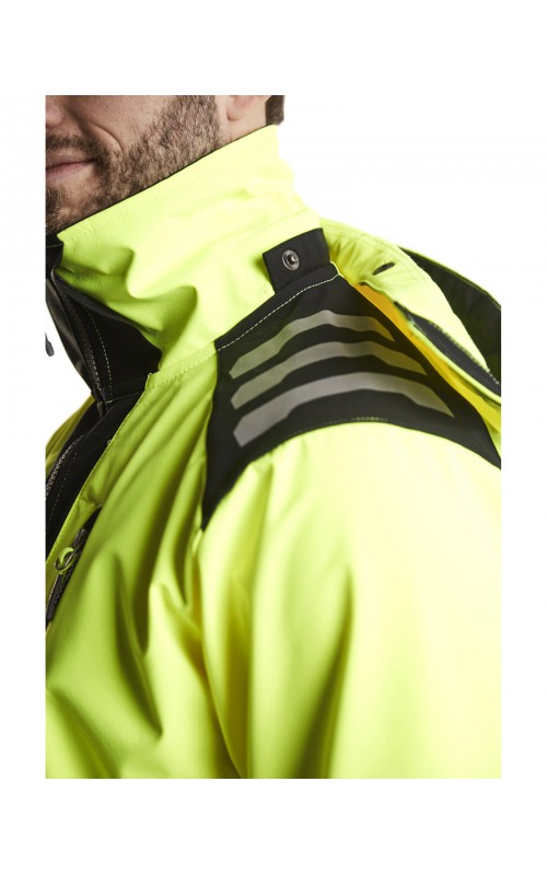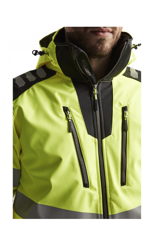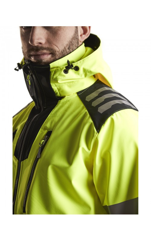 Lichtgewicht softshell jack dat dankzij het materiaal extreem zacht, comfortabel en flexibel is. Het jack heeft contrasterende kleuren voor optimale zichtbaarheid en veiligheid. Dit gecertificeerde High Vis jack heeft zowel het lichte, elastische gevoel als de sterkte die je van werkkleding verwacht. Bovendien is de stof wind- en waterdicht en is de capuchon afneembaar. Gecertificeerd volgens EN ISO 20471, klasse 2. Combinatiecertificatie C.