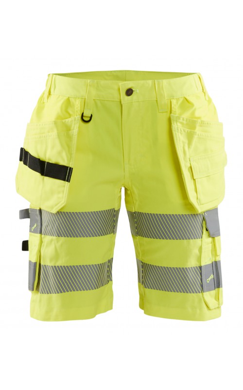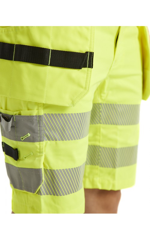 Comfortabele en flexibele High Vis short met een vrouwelijke snit. Voorzien van stretch zones in het kruis, zitvlak en het juk. Reflecterende bies, achterzak met klep, dijbeenzak, telefoonzak, ID-kaarthouder en een CORDURA®-versterkte duimstokzak en spijkerzakken. Gecertificeerd volgens de EN ISO 20471-norm, Klasse 1.
