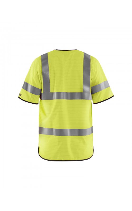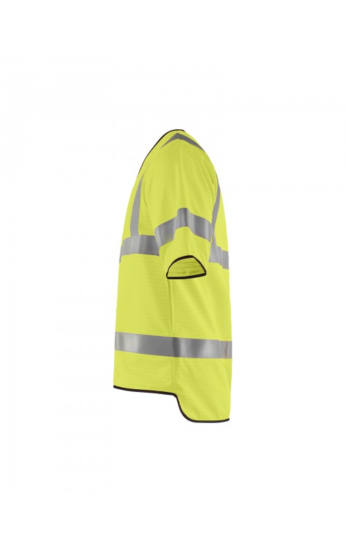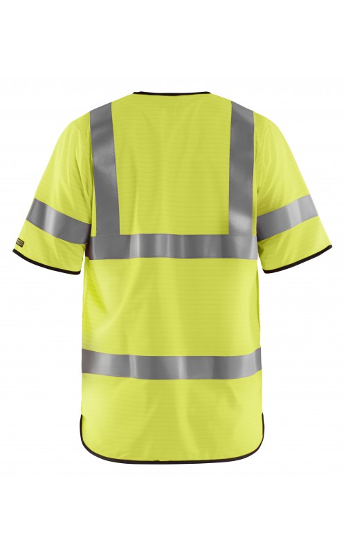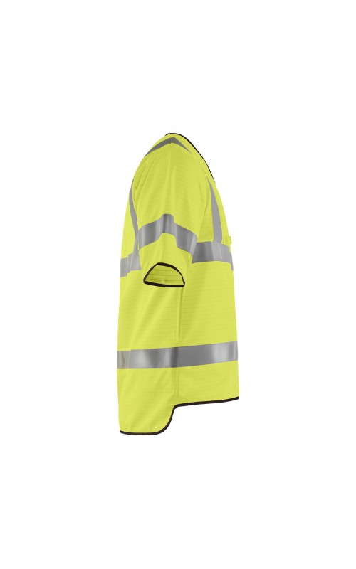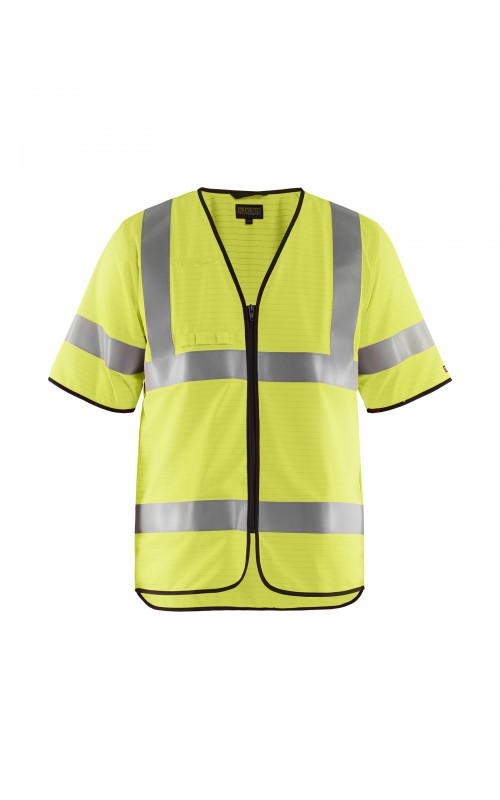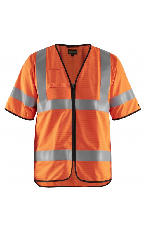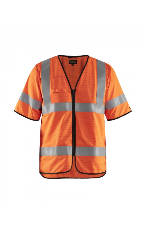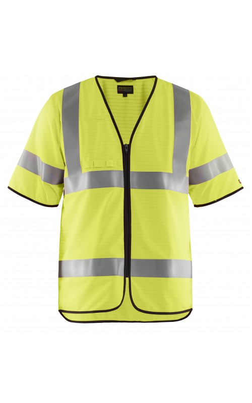 Lichtgewicht, High Vis veiligheidsvest met antistatische eigenschappen. Reflecterend tape rondom, inclusief op de mouwen, zorgen ervoor dat de drager zichtbaar is vanuit alle richtingen. Met een ritssluiting en slimme zij-openingen die zorgen voor gemakkelijke toegang tot kleding en zakken eronder. Gecertificeerd volgens EN 1149-5, EN ISO 14116, index 1. EN ISO 20471, Klasse 3.