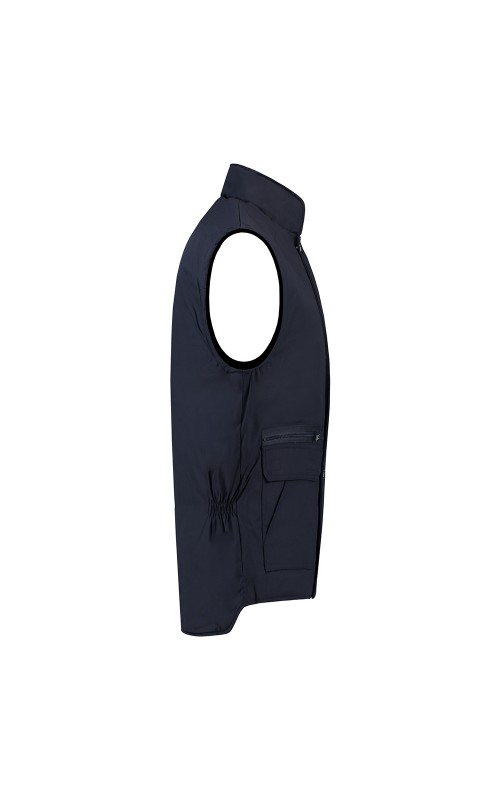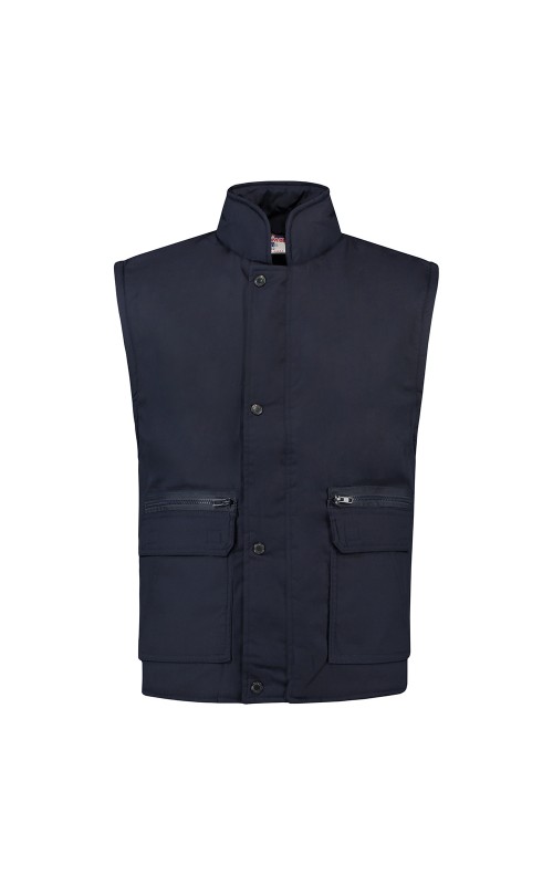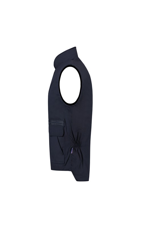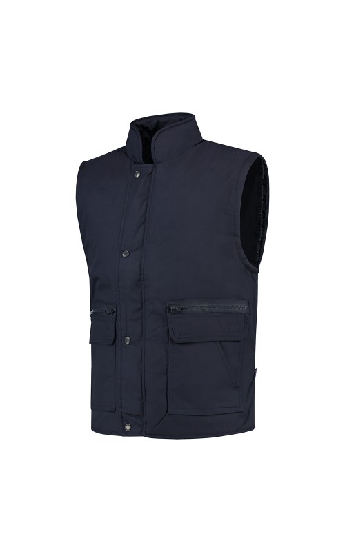Deze bodywarmer heeft een traditionele pasvorm. Het verlengde rugpand zorgt ervoor dat ook tijden het bukken de rug bedekt blijft. De bodywarmer biedt voldoende opbergruimte met 6 zakken aan de voorzijde en 2 binnenzakken, waarvan 1 geschikt voor de telefoon. De bodywarmer wordt geopend met een printerrits. De armsgaten zijn voorzien van elastische windvangers.