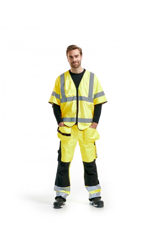 Licht High Vis vest met hoge zichtbaarheid. 50 mm breed reflecterend tape rondom borst, taille, mouwen en over de schouders maken je goed zichtbaar vanuit alle richtingen. Ritssluiting aan de voorzijde en slimme openingen aan de zijkanten, zodat u uw zakken makkelijk kan bereiken. Gecertificeerd volgens EN 20471, klasse 3