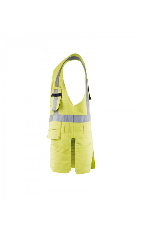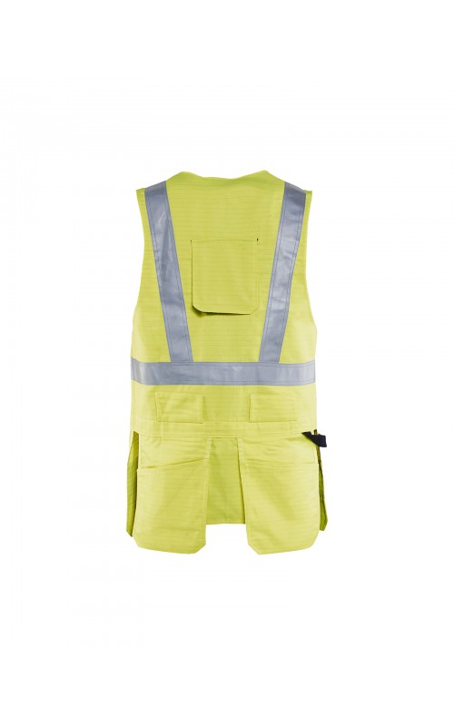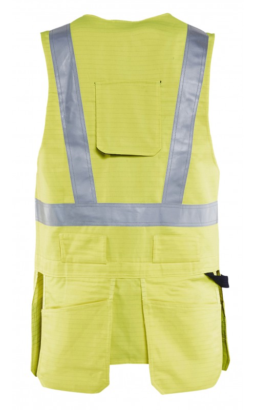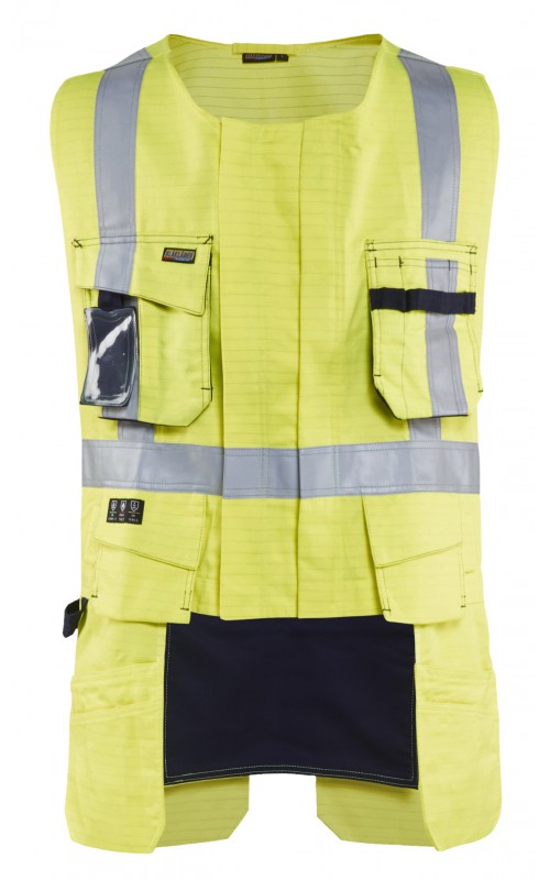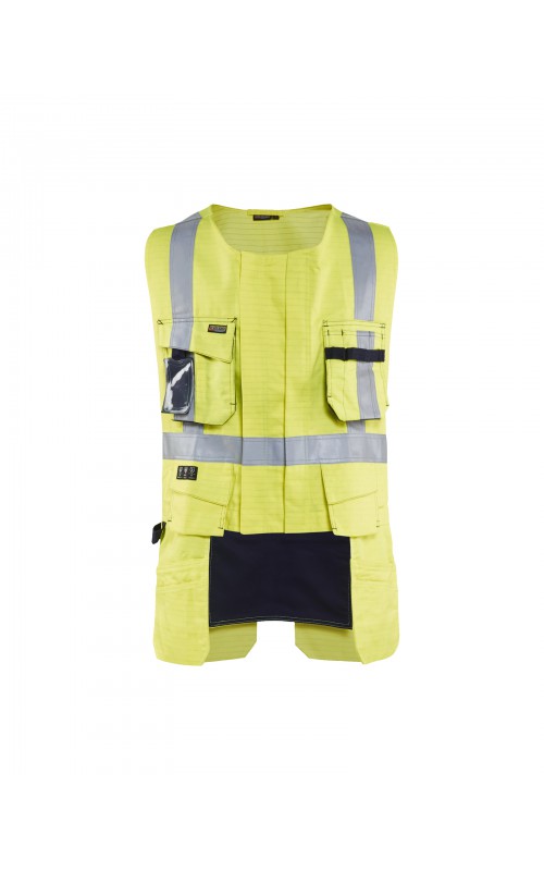 Multinorm werkvest gemaakt van duurzaam materiaal met flexibele pocket-oplossingen die uw gereedschap gemakkelijk toegankelijk houden. Het werkvest heeft verschillende zakjes in combinatie met een verstelbare borstpasvorm, zodat deze eenvoudig over een vest gedragen kan worden. Is voorzien van een opening aan de achterkant voor bevestiging van valbescherming. Gecertificeerd volgens EN ISO 20471, Klasse 2. EN 1149-5, IEC 61482-2 Klasse 1. EN ISO 11612 A1, A2, B1, C1, F1. ATPV: 11,0 cal/cm², HAF: 82,0%.