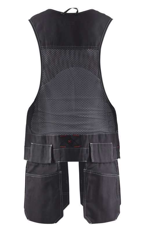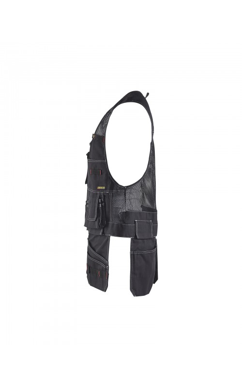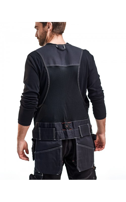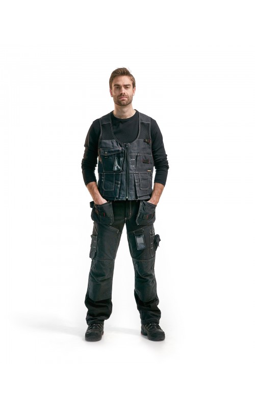Distribute weight across the upper body with a hardwearing, garment washed waistcoat. It has two chest pockets, one with flap and phone pocket, and one with pen pocket. Two reinforced nail pockets and two screwdriver pockets with flaps.