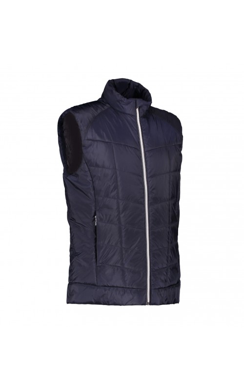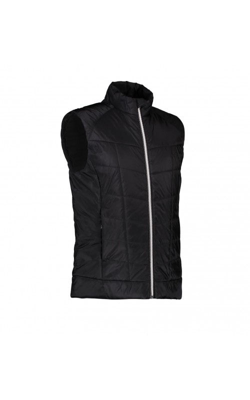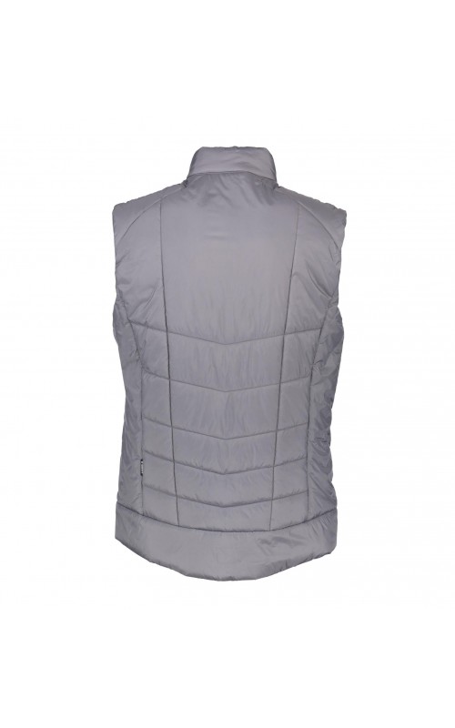 Casual lightweight vest made of very soft, water resistant and windproof material. There are quilted details on the front and back. Hidden side pockets with zippers and armholes with inside elastic seals. Lining in a contrasting colour with side drawstring to keep wind and draughts out. Tight fitting model.