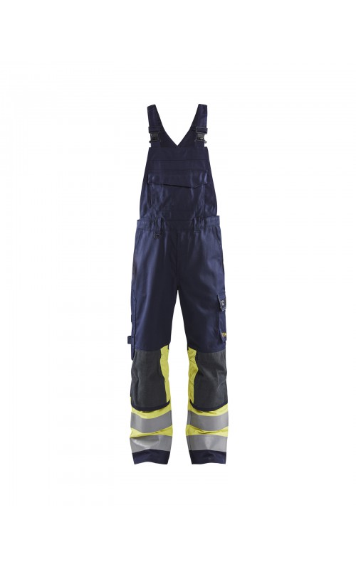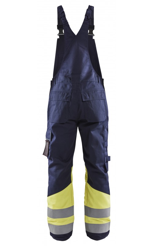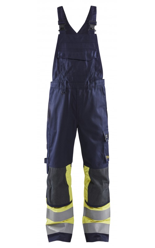 Eine Latzhose, die Ihnen den maximalen Schutz bei Arbeiten in rauen Umgebungen bietet. Die Hose hat ein haltbares Material, einen guten Sitz und verstärkte, außenliegende Kniepolstertaschen aus Cordura®/Kevlar®. Sie verfügt über intelligente Taschenlösungen und Funktionen wie verstellbare elastische Hosenträger, eine seitliche Hammerschlaufe und Gürtelschlaufen, eine davon mit D-Ring. Industriewäsche getestet. Schützt vor flüssigen Chemikalien. Zertifiziert nach EN ISO 20471 Klasse 1. EN 1149-5, IEC 61482-2 APC 1. EN ISO 11611 Klasse 1 A1, A2. EN ISO 11612 A1, A2, B1, C1, E3, F1. EN 13034 PB [6]. ATPV: 11.0 cal/cm², HAF: 82.0%. EN 14404: 2004 + A1: 2010 zusammen mit Kniepolster 4027 und 4057.